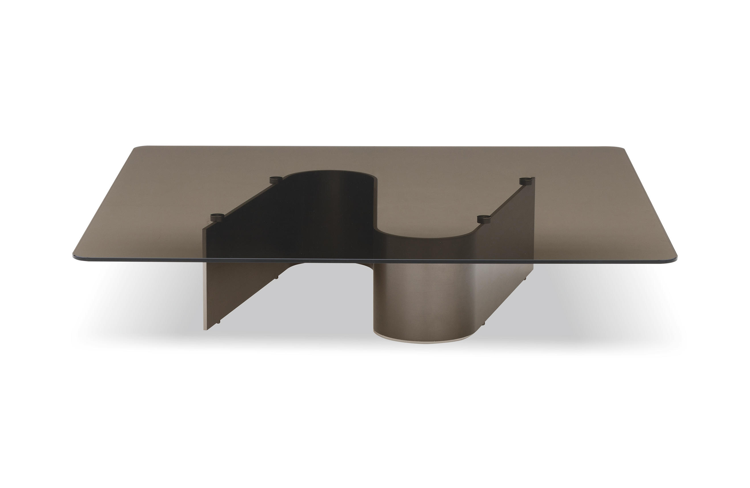 一个锋利而又具有决定性的标记,使底座的金属板形成一个青铜色的玻璃表面。双层阴影,光滑和不透明,定义了支撑结构的两个表面,它结合了缎子轻青铜彩绘金属和Corten或沙色光泽漆。