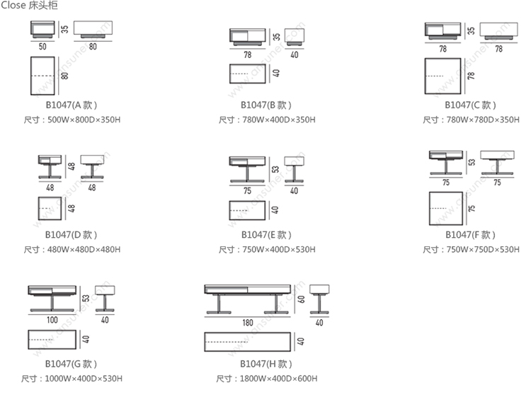 Close 床头柜 系列尺寸/示意图