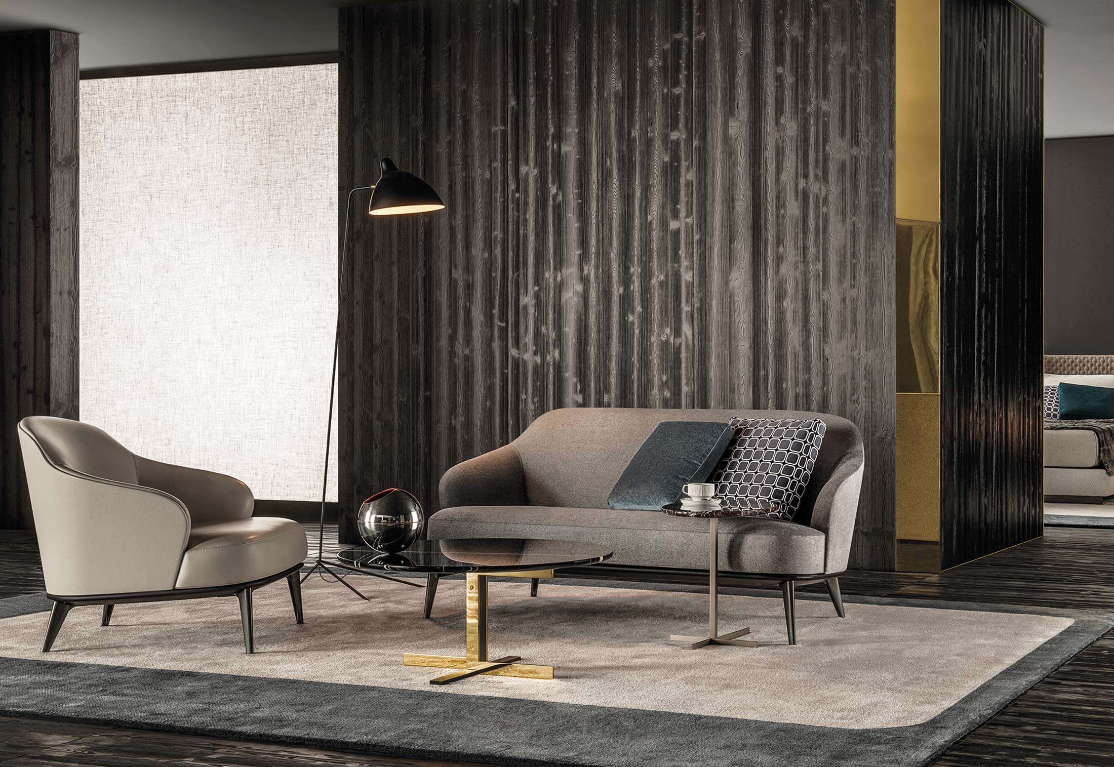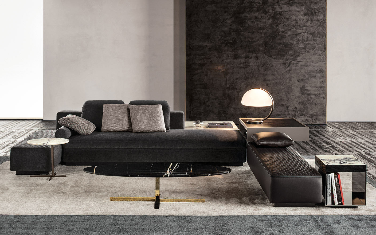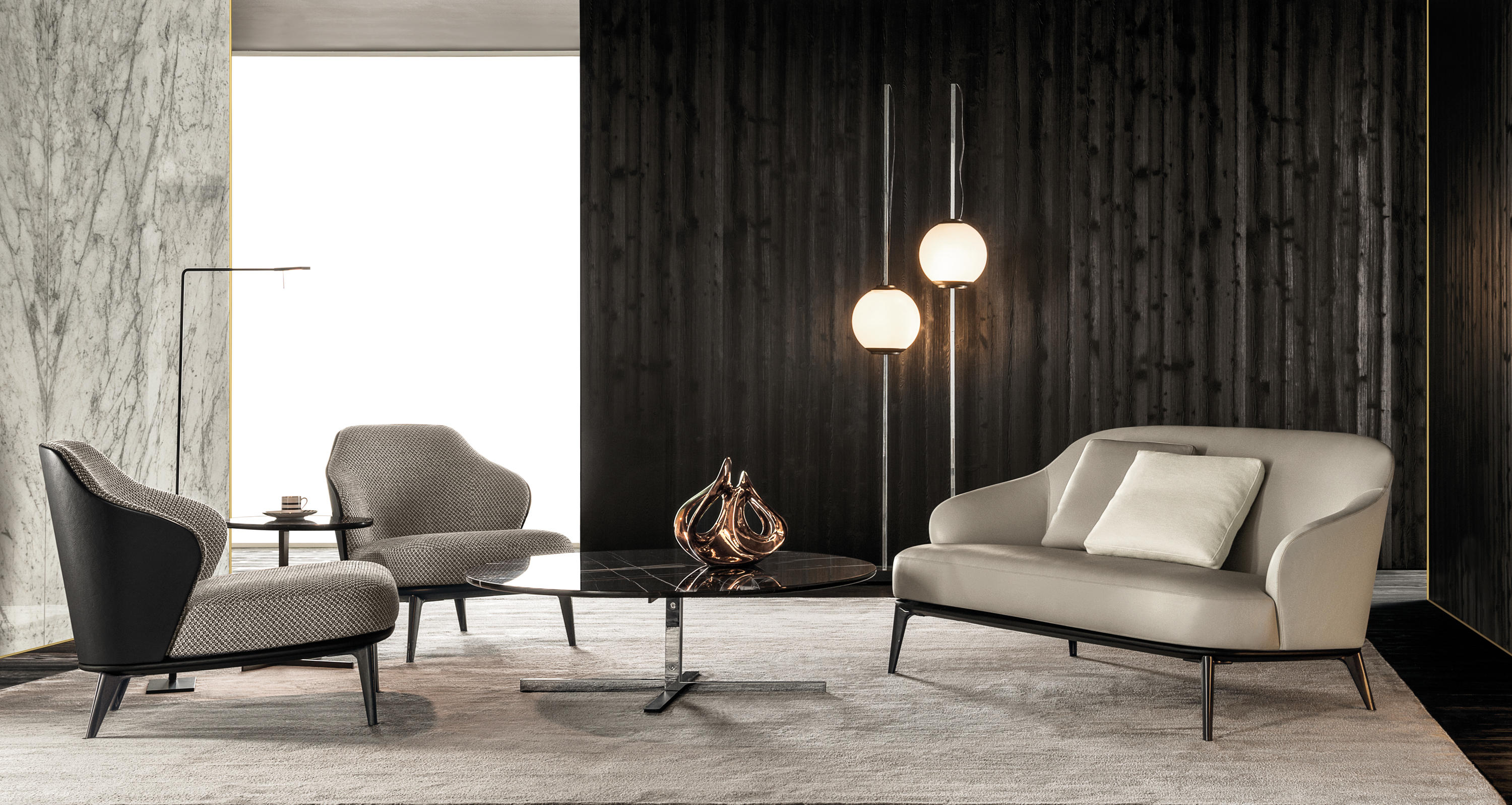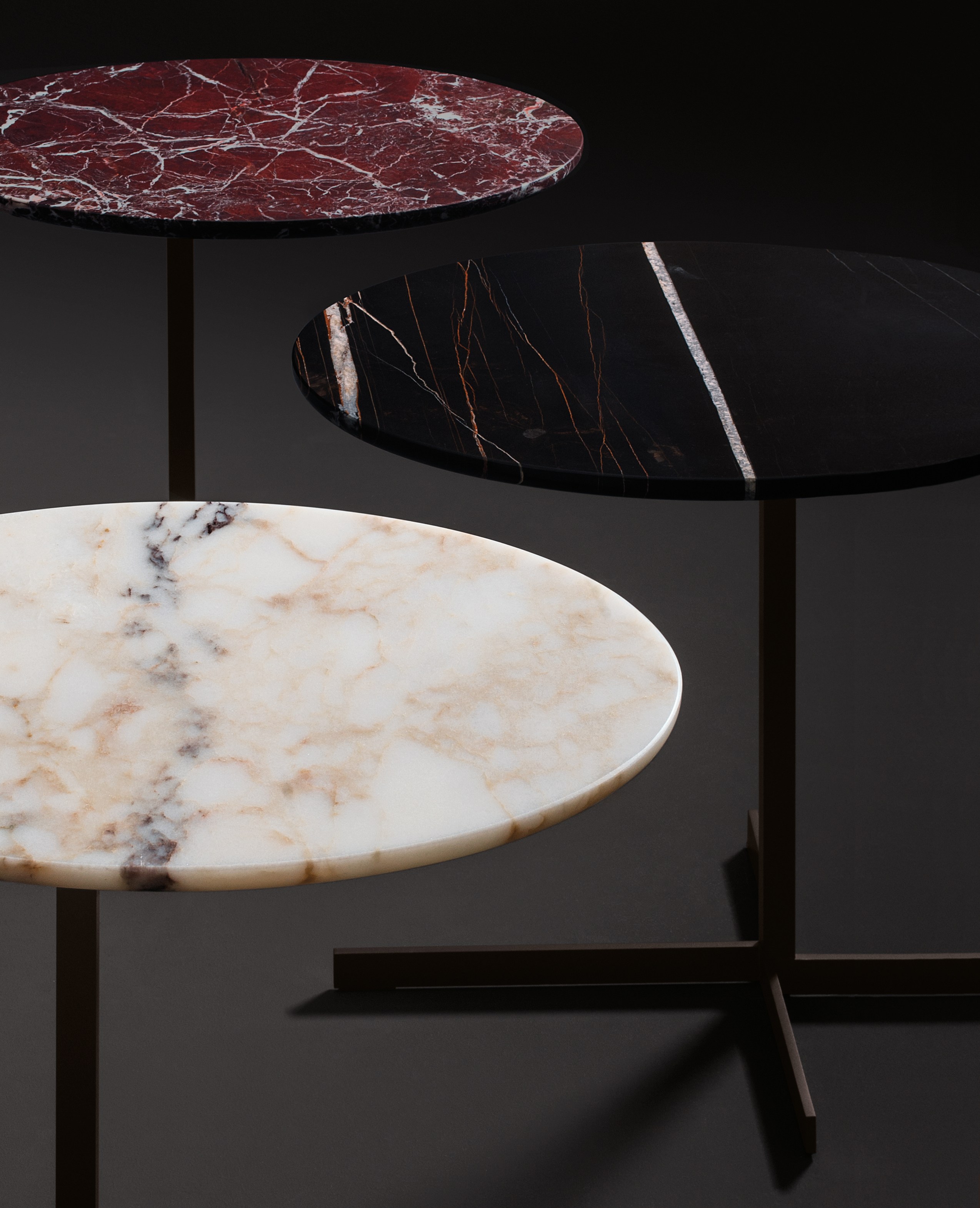 这款边几是专为搭配最新沙发座椅系列而设计的万能单品,基座为造型严谨的金属材质,台面为珍贵的大理石。Joy边几推出全新版本,采用椭圆形的大理石台面,与基座一同打造出不对称的效果,因而Joy “Jut Out”边几尤其适合搭配全新系列的沙发座椅。基座为十字形支撑,采用铜色金属材质。Joy “Jut Out”边几的台面采用圆边设计,还可以选用名贵的大理石材质:Arabescato Purple、Sahara Noir、Rosso Levanto,全部为抛光表面。