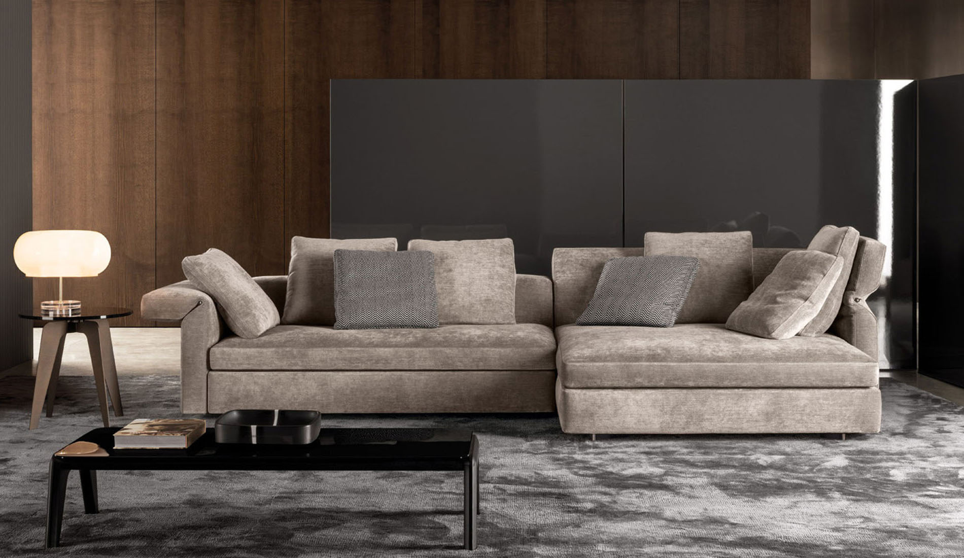 以精美梣木底座致敬传统黑檀木艺术,搭配拥有圆滑转角与柔和饰边的光泽漆面黑檀木、黑色脱蜡琉璃及 Marron Damasco 大理石台板。