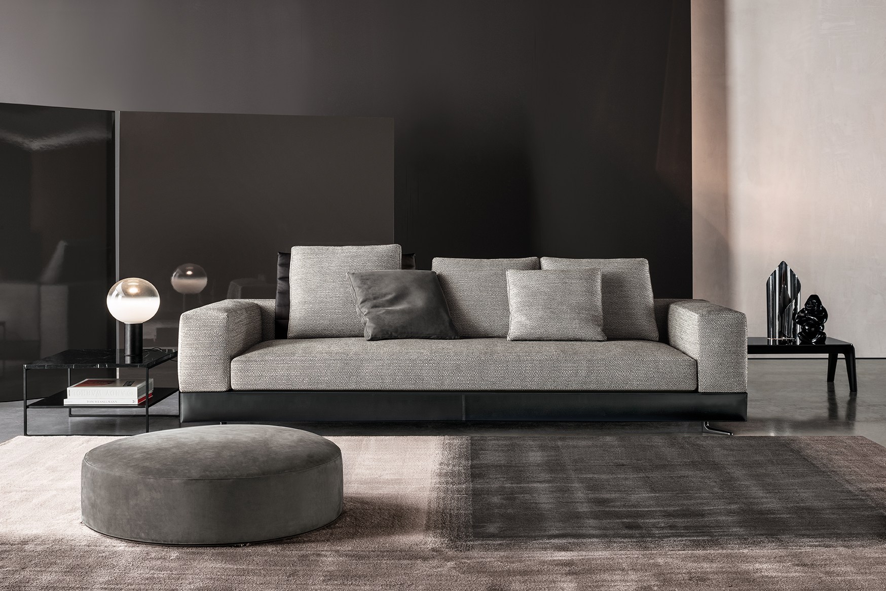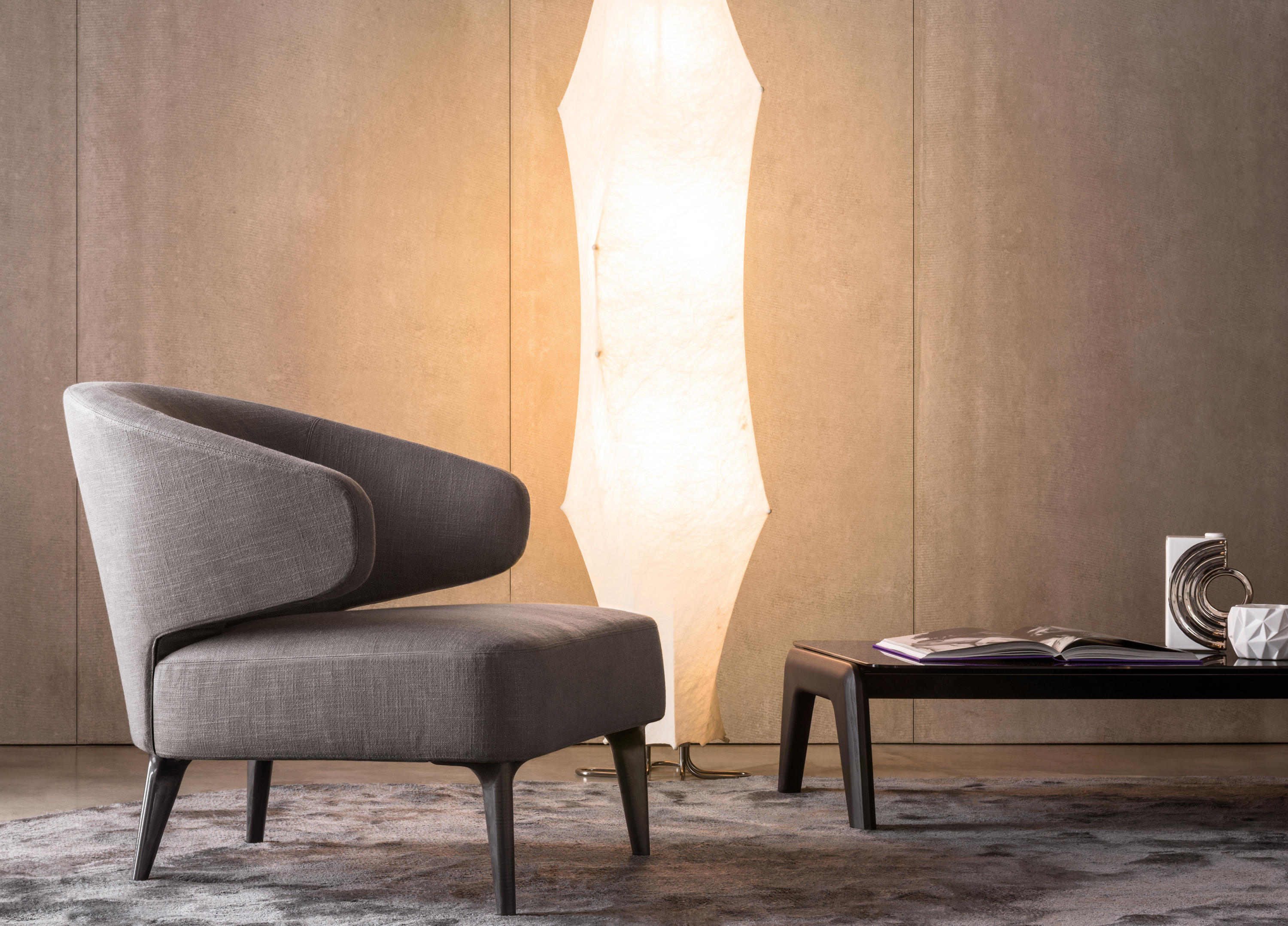 以精美梣木底座致敬传统黑檀木艺术,搭配拥有圆滑转角与柔和饰边的光泽漆面黑檀木、黑色脱蜡琉璃及 Marron Damasco 大理石台板。