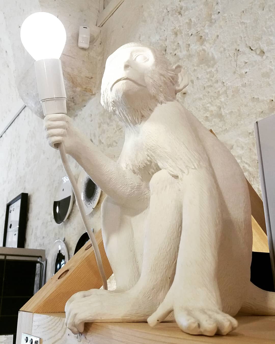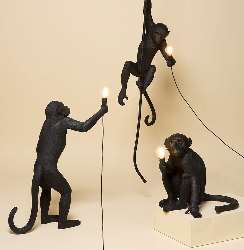 这款猴灯由树脂制成,手工完成,描绘了一只猴子在三个不同的位置,一边抓着一个LED灯泡,一边探索周围的环境:一种新的、替代的照明方式。猴子很容易让人联想到人类:这就是为什么我经常在我的雕塑作品中提到它们。在Seletti的版本中,他们溜进了我们的房子,觉得他们是在偷那些灯泡,其实是在为我们服务。作品灵感来自于人与自然的关系。
