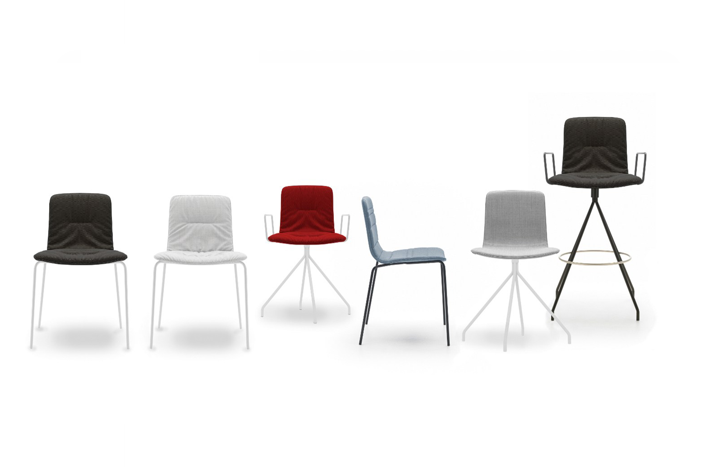 KLIP SOFT提供与原始Klip系列完全相同的基础结构; 四脚,旋转底座,脚轮底座和旋转凳子。由经过校准的钢结构组成,涂有热增强聚酯面漆,并配有膨胀聚氨酯泡沫垫KLIP SOFT可用于任何Viccarbe的室内装饰面料,包括合成和天然选择该脚轮版本的功能在白色或黑色,高度调节机构和软脚轮铝旋转底座涂漆。 KLIP SOFT也可用于从涂漆的管状钢制成扶手的版本。