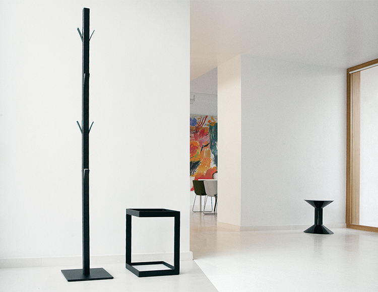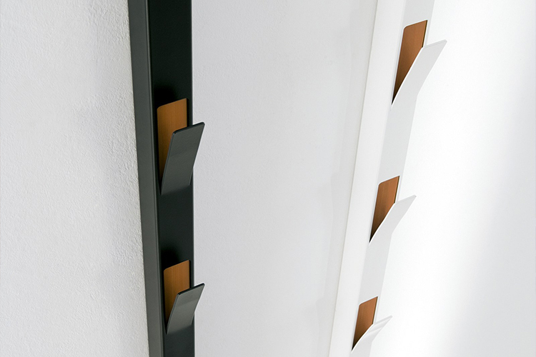 校准过的粉末涂层钢管,采用黑色或白色微织纹的热增强聚酯制成。圆形衣架经过激光切割和精心设计的尺寸,可以对衣服进行适当的护理。黑色或白色的聚乙烯慕斯内部。