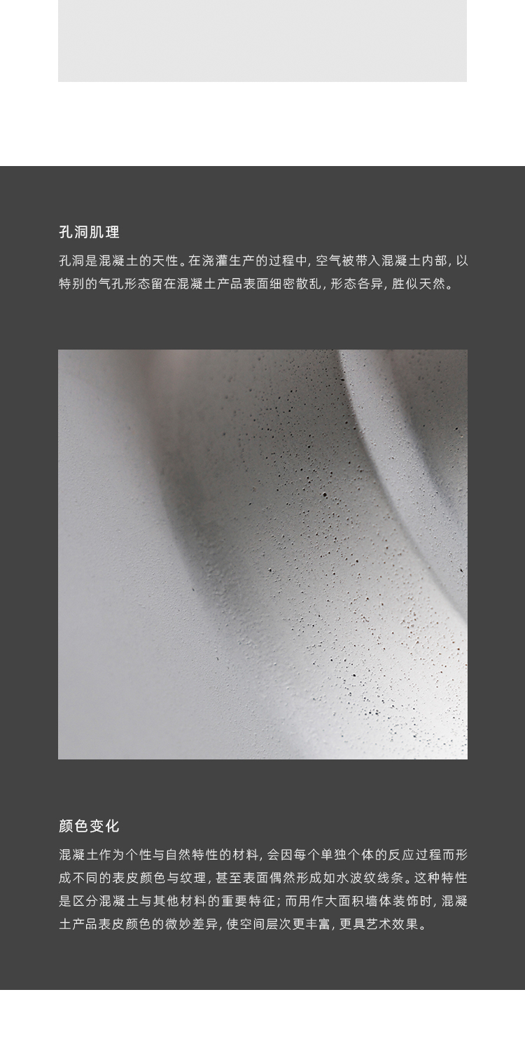 一个圆形向上垒叠指向高处,如面世的孩童玩耍积木,没有具象的意识形态简单而纯粹;在数字的理性和生命的感性中游离,在工业生产的体系下建立标准,与空气的交融中反应碰撞,表面所留下来的痕迹是混凝土的绽放。