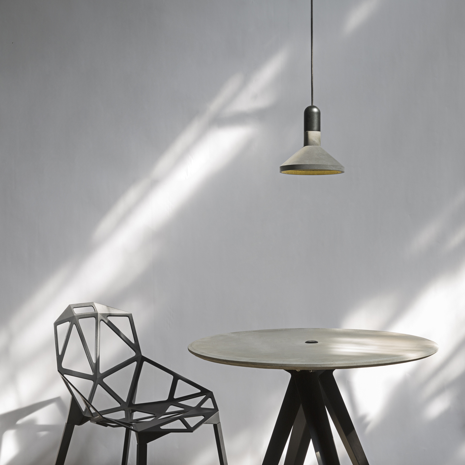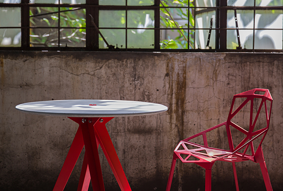 细密的,散乱的,韵律的,自然地……孔洞,散布在灰色基面,它们自在地吐纳着。养护中的清水混凝土,在大口呼吸着。只因星点孔洞凹凸不平,藏匿着的空气被水挤压但又暂时未完全与其分离。每件本土家具的出生,似乎都由同一段历程走向不同:气泡在模具里跳动,翻腾,幻灭,直至凝固才停息,各自迥异的生命痕迹也因此被记录。这种充满生命力的肌理,在本土的感悟和挖掘下,得以拂去尘土,绽放光芒。星点孔洞,洞见本土的真诚和用心。