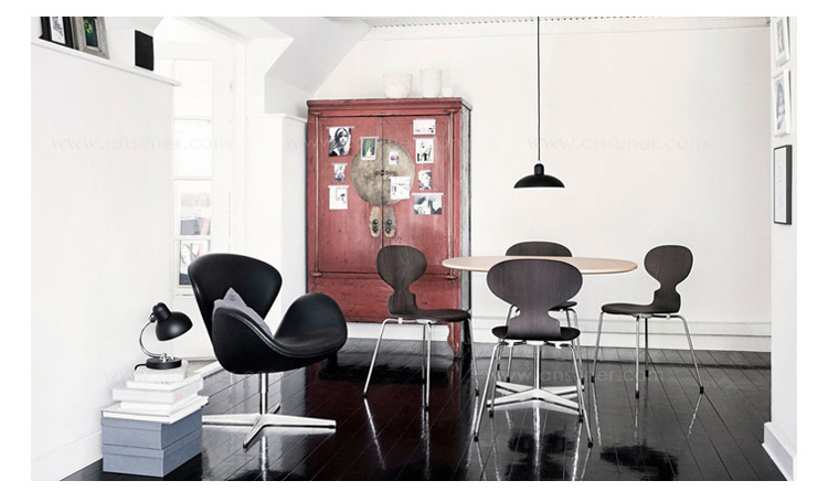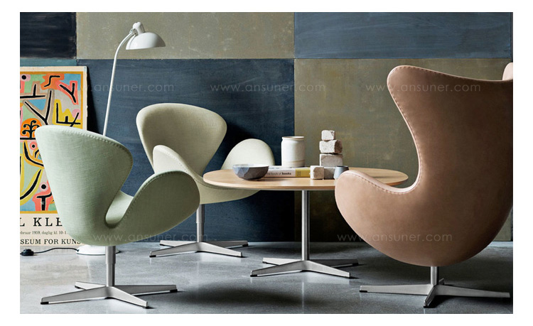 天鹅椅于1958年由丹麦设计师Arne Jacobsen所设计,因其外观宛如一个静态的天鹅而得名。作为一款现代家具设计中经久不衰的经典作品,天鹅椅以其优雅的造型和简约的设计一直为追求时尚的人们所情有独钟。被认为最有代表性的北欧设计,也是世界艺术的珍品。此款为天鹅椅的儿童版,为原版的缩小版,适合儿童依座,命名为Child's Swan Chair(儿童版天鹅椅)。天鹅椅内部是钢材质,由模具出模成型,坚固的材质,不会变形、不会开裂,完美的质量让您放心使用。表面是进品真皮(可选用羊毛绒布或其它皮种),整个产品表面光滑,不起皱。针缝直而顺且流畅。线条优美、缝线美观、均匀自然。皮裁直顺,皮管粗细均匀。整个椅子的布或皮下面都有垫弹性海绵,耐坐不变形。不仅外观圆滑且更富有弹性,让坐感更加舒适。铝合金(或不锈钢)四星脚,每个细节都顺畅无坑洼,光滑不留痕迹。椅脚都可360度旋转,如天鹅般外形独特,具有个性的设计作品,加上精心设计的椅脑与扶手,两边对称相应,坐上去舒适、优雅而大方。