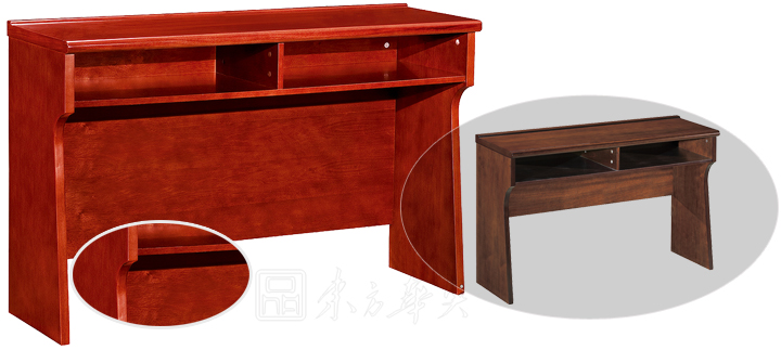 ※  全木制结构条形桌,桌脚可做直形及弧形,下设空格储物空间,内置麦克孔,不同的颜色选择,满足不同需要;