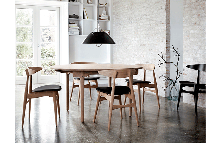 "CH33 dining chair(ch33餐椅)由Hans Wegner设计于1957年,是其总多经典座椅之一。CH33餐椅轻巧的同时兼顾了座椅舒适度的与坚固度。其拥有着50、60年代的简约线条,座垫部份可选择增加皮革或布料软垫.主体更可随意搭配指定木料款式。CH33餐椅餐椅不仅仅是一把椅子,它更像一件艺术品,无论用在任何环境都非常的优雅气质,精良的手工制作更使它推向经典,流行至今,产生了一代又一代的拥趸者。