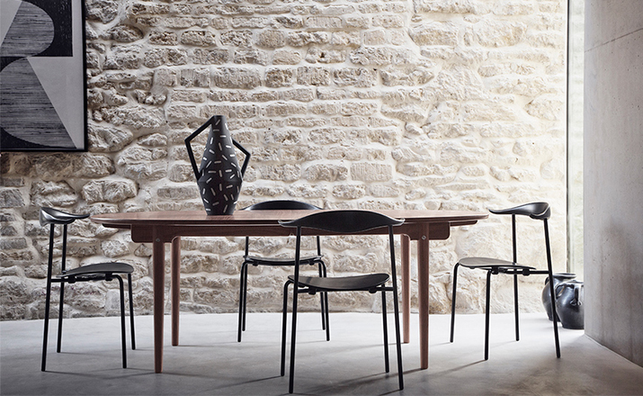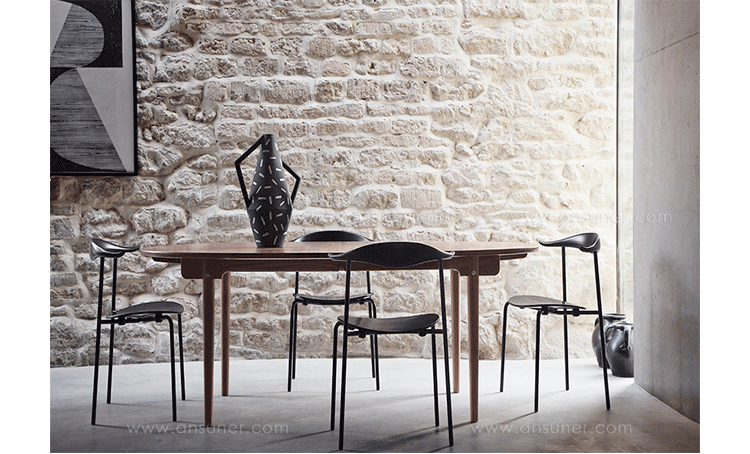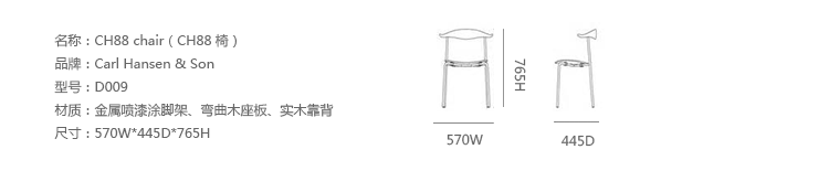 Wegner CH88 Chair,设计于1955年,不过当时没有马上生产。为了纪念大师的100年诞辰,Carl Hansen & Son公司正式启动这个项目并投入生产。蒸汽弯木技术的扶手结合椭圆木质座板以及不锈钢腿的混合材料使用使这把椅子的工业化设计感倍增。同时这把椅子也是可堆叠的,增加了多功能性。这款椅子无论外观还是实用性都做到极致,其中光洁度和框架显得多才多艺。上部结构设有蒸汽弯曲木靠背的背部支撑,靠背的两端有轻微弯曲的手臂,提供了一个自然休息的地方。钢架,直后腿,支撑一个椭圆形的木制座位。这种混合的材料,结合简约的设计,焕发出光、有机、工业的完美表达。
