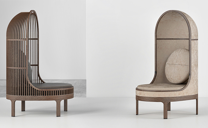 A unique seating experience.This lounge chair has a surrounding shell,making a cosy "nest" for the user. Nest keeps you close to your earliest memories.Whether placed in the middle of an immense desert or in a crowded lobby,Nest makes a statement.