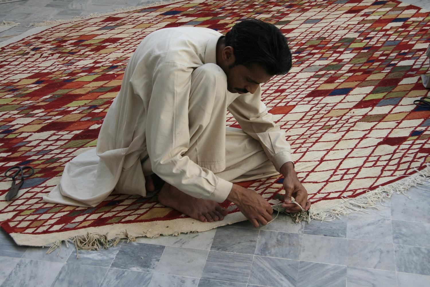 地毯通常被设计成一个图案分布的表面。然而,在格的情况下,模式被定义为一种生成地毯本身形式的建设性系统。彩色条纹的系统,在这种模式,形式和颜色以一种亲密的方式联系在一起,创造了一个不同的范围。——布洛埃克兄弟解释道。