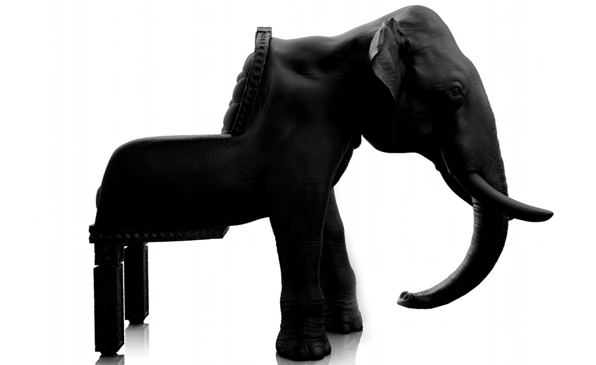 西班牙设计师 Maximo Riera 设计了一组包括章鱼、犀牛、海象、狮子等在内的 15 件动物造型座椅系列皮椅。这个系列的动物椅集合了不同的物种,从哺乳动物到爬行动物,甚至包括昆虫。每个设计都保留了动物的自然活力,同时又准确还原动物的外观特征。这些动物椅的初衷是一种尝试,希望以动物的栖息来反映和捕捉大自然的美,并向我们星球上的整个动物王国致敬。设计师除了表现动物的野性美,也在善意的提醒人们要维持生态的平衡,尤其对濒危物种多加关注,以实现人与自然的相互依赖和谐共存。Elephant Chair(大象椅)是他之前一个系列家具作品的延续。这一系列作品将家具和动物结合到一起,每件家具的主要部件都装饰有一种动物。大象椅(Elephant Chair),拥有钢制的骨架、泡沫塑料的血肉和黑色的皮肤(皮革),全重高达160公斤,不论是块头还是重量,还是那颗象头雕刻的精细程度,都能让人叹为观止。