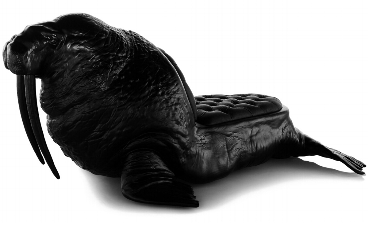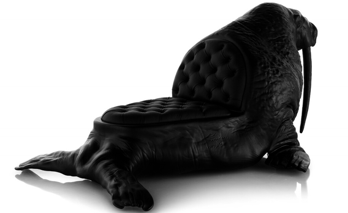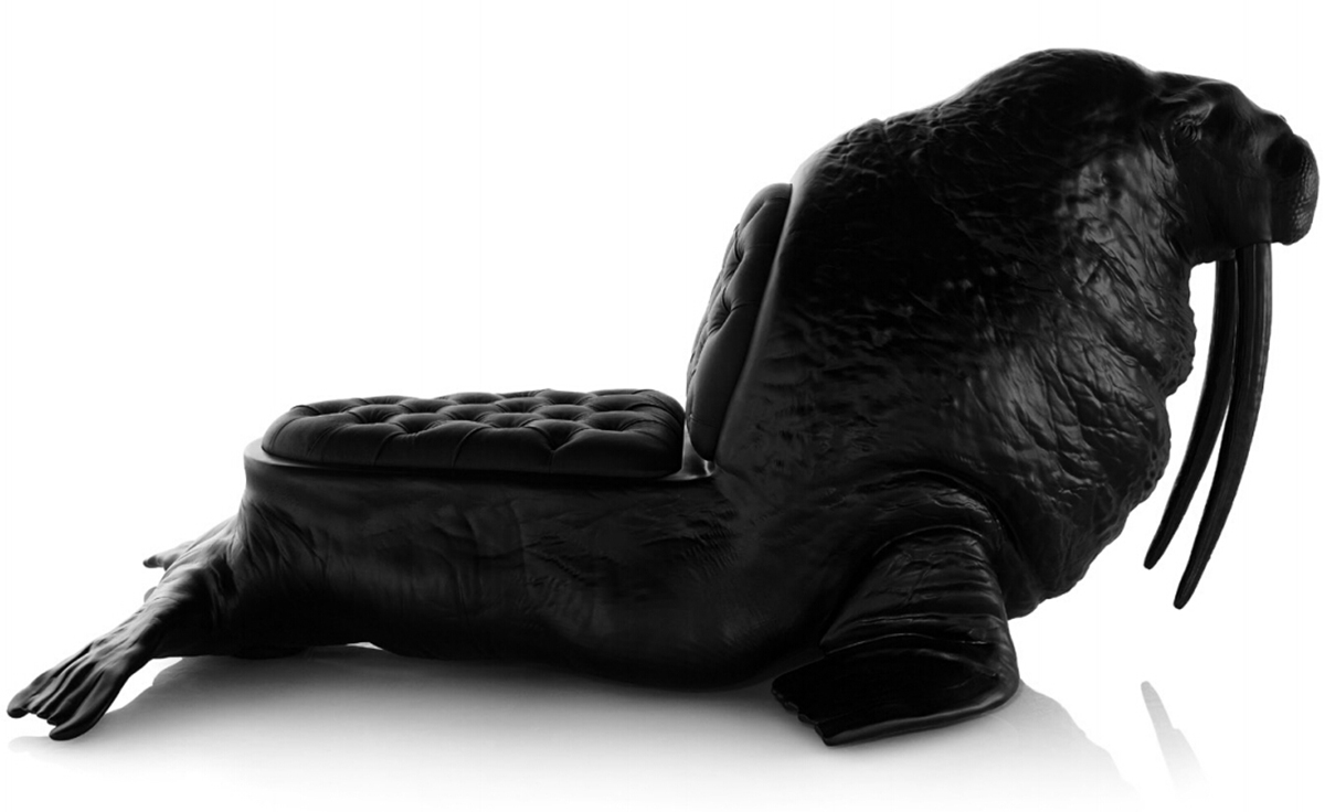 西班牙设计师 Maximo Riera 设计了一组包括章鱼、犀牛、海象、狮子等在内的 15 件动物造型座椅系列皮椅。这个系列的动物椅集合了不同的物种,从哺乳动物到爬行动物,甚至包括昆虫。每个设计都保留了动物的自然活力,同时又准确还原动物的外观特征。这些动物椅的初衷是一种尝试,希望以动物的栖息来反映和捕捉大自然的美,并向我们星球上的整个动物王国致敬。设计师除了表现动物的野性美,也在善意的提醒人们要维持生态的平衡,尤其对濒危物种多加关注,以实现人与自然的相互依赖和谐共存。Walrus Chair(海象椅)是他之前一个系列家具作品的延续。这一系列作品将家具和动物结合到一起,每件家具的主要部件都装饰有一种动物。
