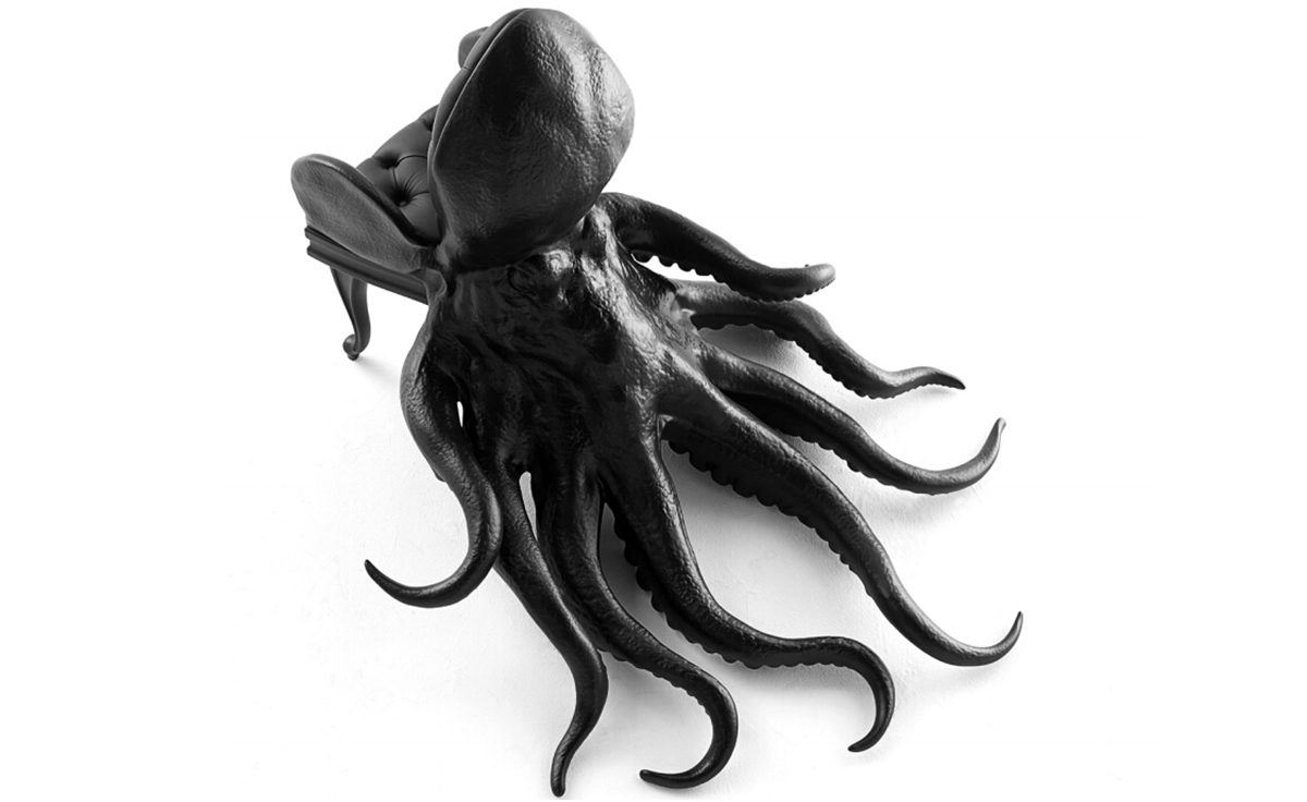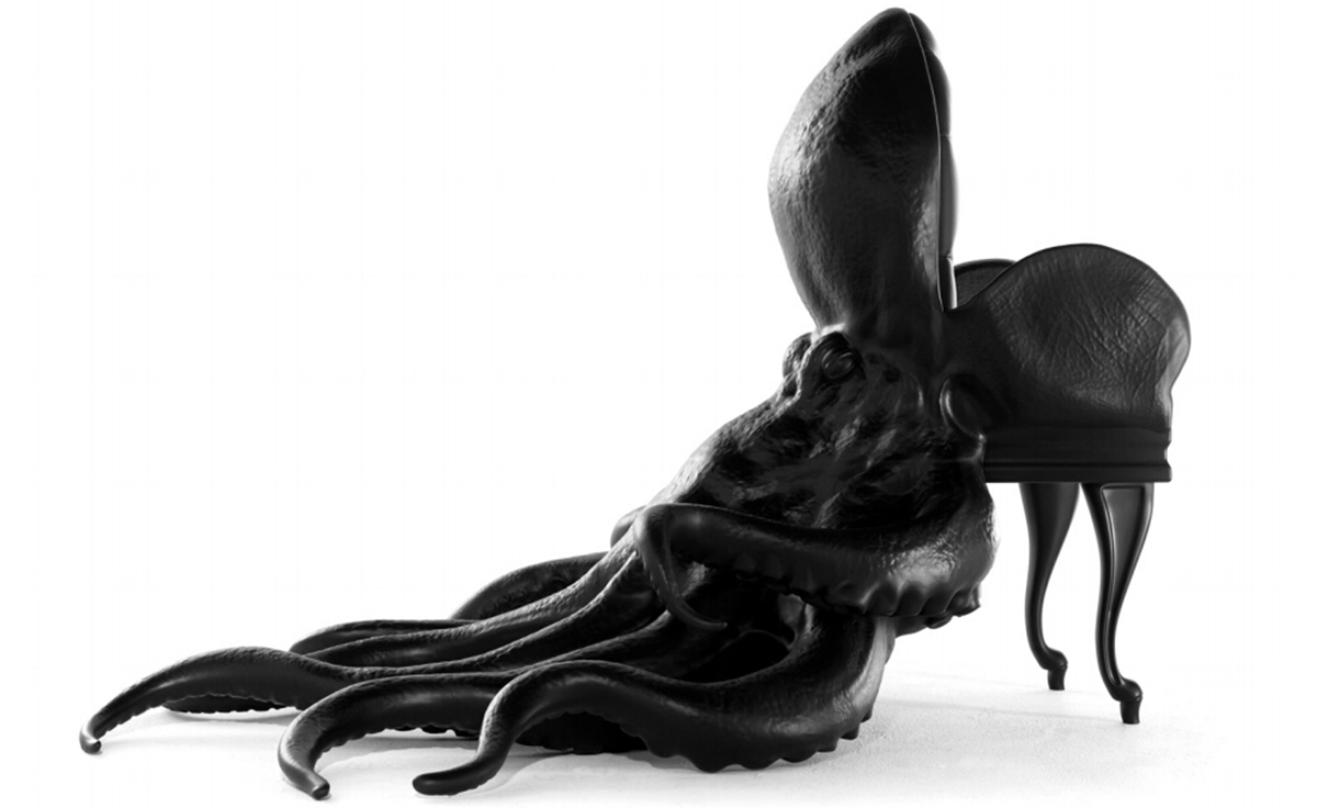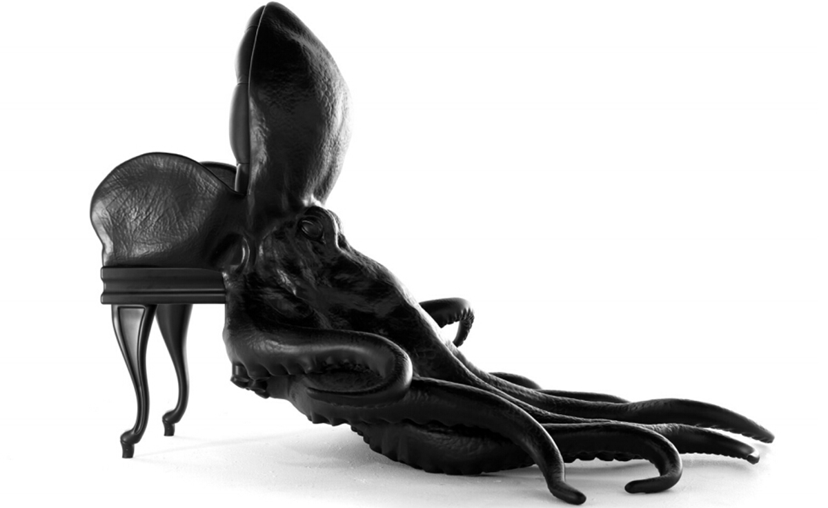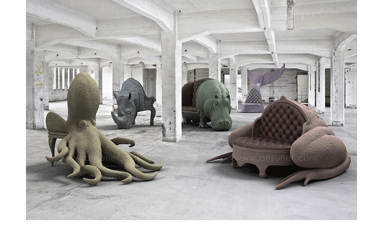 西班牙设计师 Maximo Riera 设计了一组包括章鱼、犀牛、海象、狮子等在内的 15 件动物造型座椅系列皮椅。这个系列的动物椅集合了不同的物种,从哺乳动物到爬行动物,甚至包括昆虫。每个设计都保留了动物的自然活力,同时又准确还原动物的外观特征。这些动物椅的初衷是一种尝试,希望以动物的栖息来反映和捕捉大自然的美,并向我们星球上的整个动物王国致敬。设计师除了表现动物的野性美,也在善意的提醒人们要维持生态的平衡,尤其对濒危物种多加关注,以实现人与自然的相互依赖和谐共存。Octopus Chair(章鱼椅)是动物椅藏品系列的第一件作品,它为作者在未来众多作品中的大胆表现奠定了基础。优雅是该作品最突出的特点。为了忠实表现动物的形体及其运动的自然高雅,必须为其搭建一个内部框架,以支撑其结构和表现良好姿态。正如同系列的其他作品一样,动物是作品中的唯一主角。我们常说人与自然互相依存,和平共处,章鱼椅的设计也很好地诠释了这一理念:它讲求动物与人的和谐,两者相互平等,谁都不需要依赖另一方。章鱼在这里不是装饰;它正如坐在上面的人一样,是椅子内在固有的本质。因此,章鱼椅完美地有体现了动物、椅子和人之间作为一个不可分割的整体所呈现出的一种奇特感觉。
