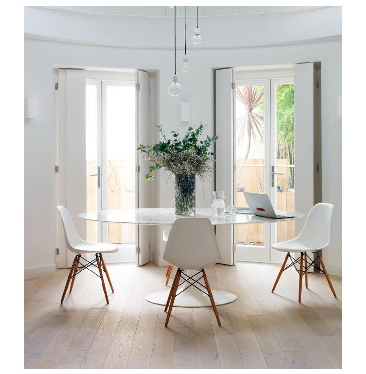 Tulip Dining Table(郁金香餐桌)是芬兰裔美国设计师Eero Saarinen在1956年设计的作品。优雅、清秀的桌脚配上天然的大理石桌面,极简却又完美。Tulip Dining Table(郁金香餐桌)是现代餐桌的代表作,作为家庭中使用餐桌、高档饭店中的餐桌和酒店中使用的餐桌都非常合适。作为著名家具设计师设计的作品设计品位自然不会低,这种餐桌设计出来的时候就被广泛的运用到了饭店、酒店和家庭中,成为当时最热销的餐桌之一,餐桌主要材料是玻璃钢(可选大理石),整张桌子是采用一次成型,中途不会出现裂缝,有质量保障,桌面平滑不会凹凸。