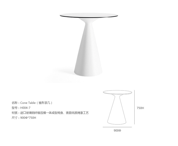 "锥形茶几是一个稳定宽敞的桌子,可作为立桌或实用的沙发桌。几何设计语言温和,锥形茶几散发出一种简单优雅,使用令人兴奋的混合材料。支撑由旋转型聚乙烯塑料制成的,有着圆形或椭圆形紧凑的桌面层。支撑有一个电缆槽,如果需要,可以配备一个电源端口,使电和网络连接。"