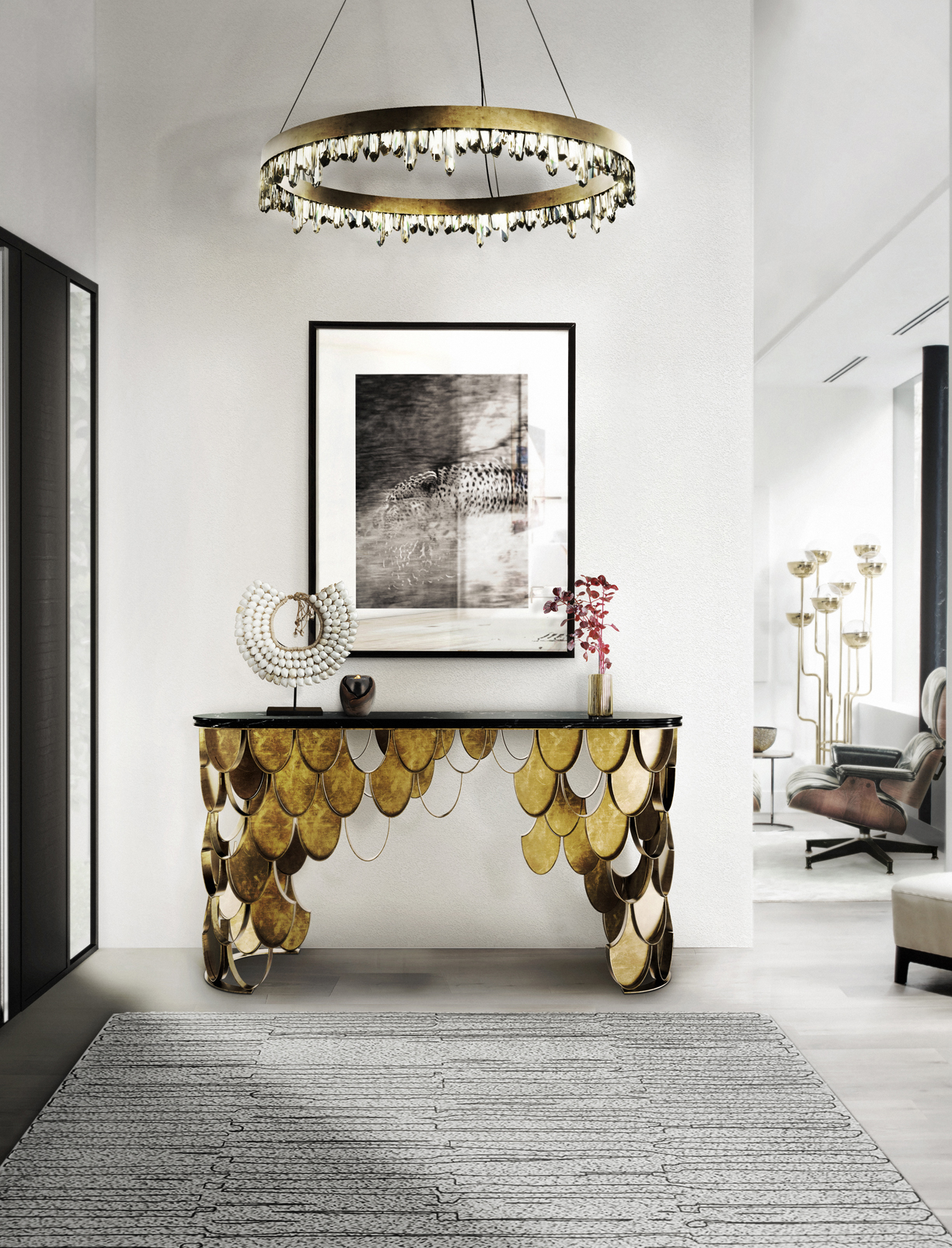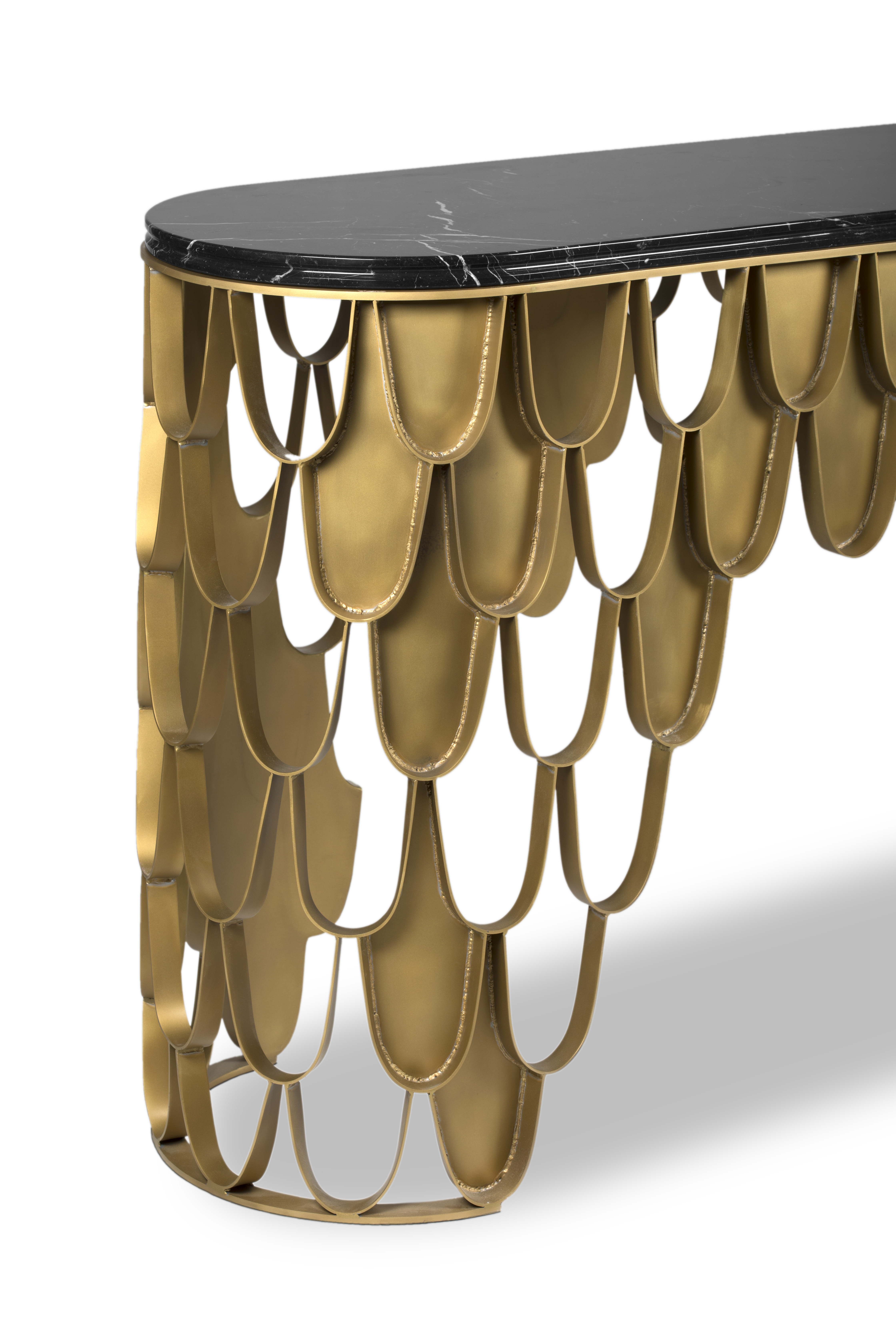 锦鲤,日本文化的象征。金属反射光泽,如在清水中,大理石台面,工艺精美。
