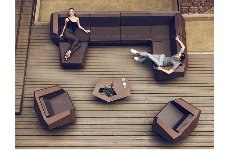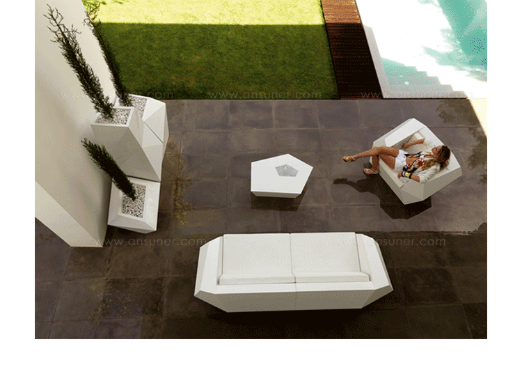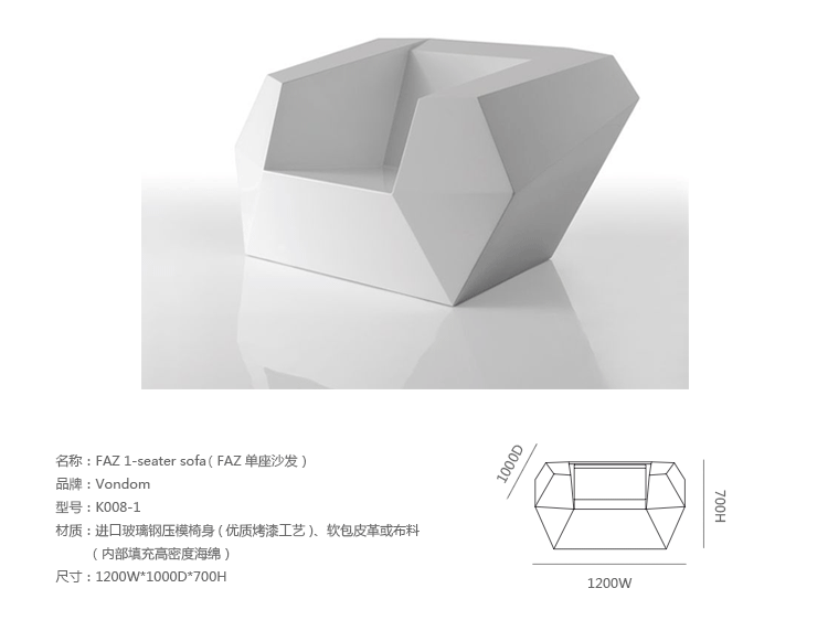 FAZ是西班牙著名建筑师Ramon Esteve为VONDOM公司设计的组合家具和花盆系列。Ramon Esteve是和谐的,平静的和永恒的建筑师,创造了一个矿物质的,表现力丰富的形状,;令FAZ跟我们的家或其他环境完美融合。气氛,包围的结果是材料和光线元素幸福的组合,其独特的察觉是气混合体。他们的灵魂,VONDOM,他的独家性是他原材料的品质,允许,甚至在最苛求的环境使用。FAZ的组合性允许消费者灵活的组合他们的家具和花盆,来适应他们的风格,但并没有失去这家具系列的和谐。FAZ,由辅助桌子,扶手椅子,组合沙发和咖啡桌子,还有三个不同比例的花盆组成。这个系列还配套了最优质的户外坐垫。FAZ,他的结果是表现本质,包含复杂性和密度性,直到极端细节的杰作,其目的是创造一个我们向往的居住地。