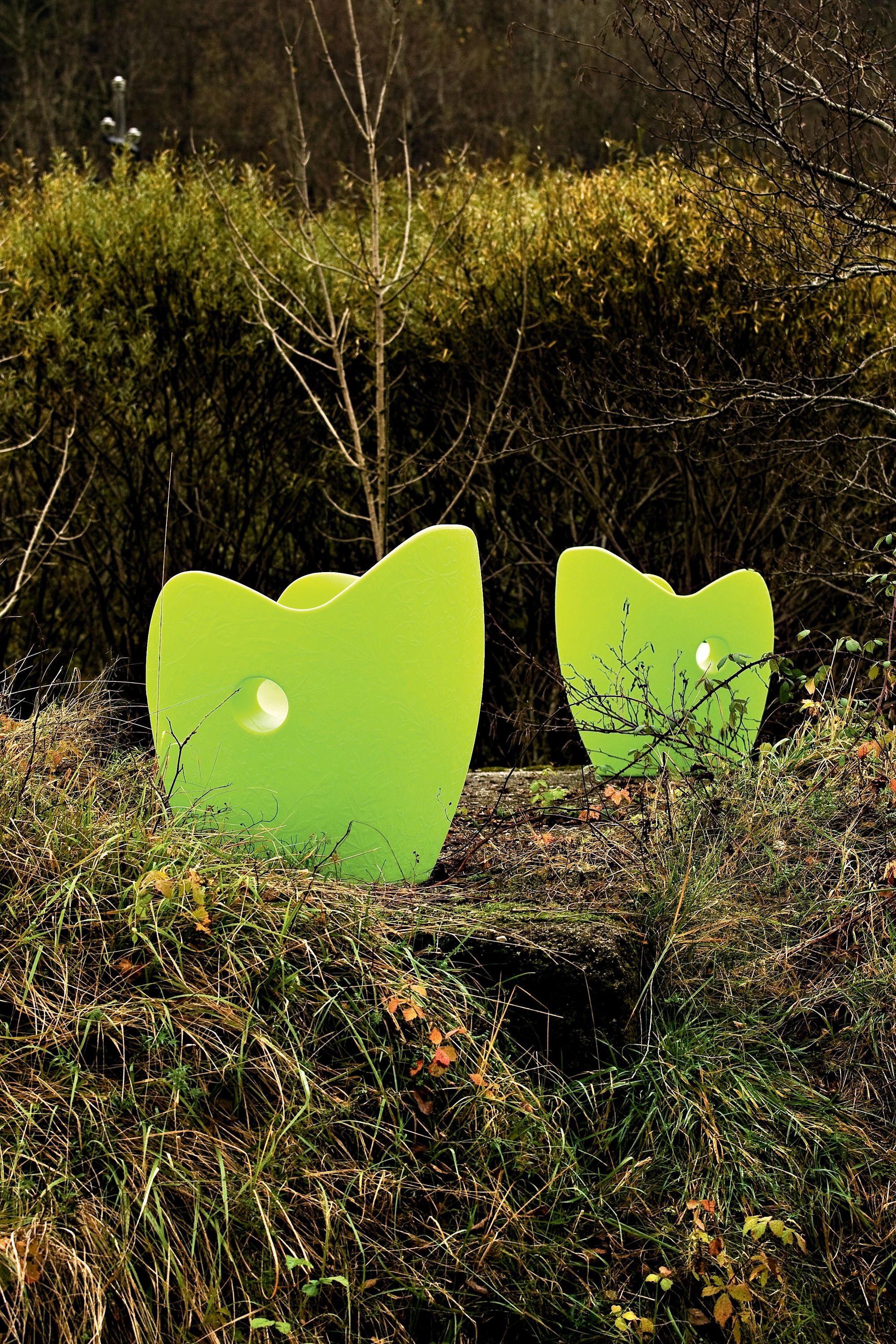 目标功能性家具无论在室内还是室外使用,O-Nest都是一种发光体,在某种程度上是变化的,可以被放置在不同的环境下:居住空间,办公室,图书馆,医院,幼儿园和学校。从远处看,有一种强烈的、前后一致的画面,显示出理性的和塑料的植物,用颜色强调“超现代”的方面,如果近距离拍摄,带有花卉图案的浮雕装饰将它变成一个开花的灌木,在一个温暖舒适的巢穴里。