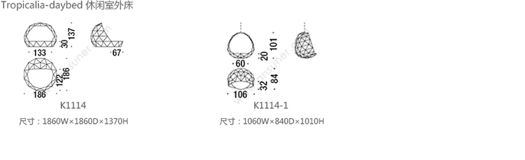 Tropicalia-daybed 系列尺寸/示意图