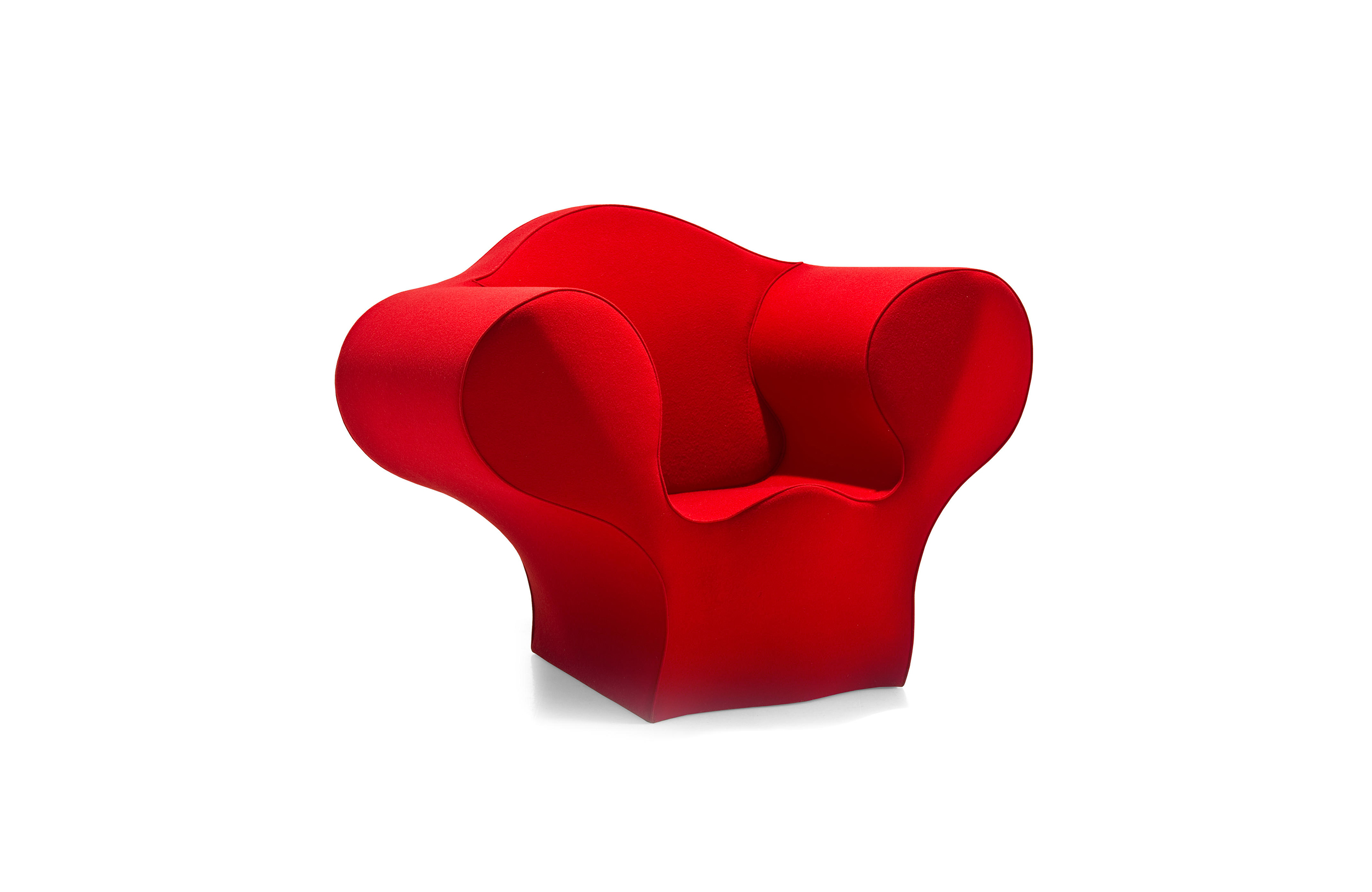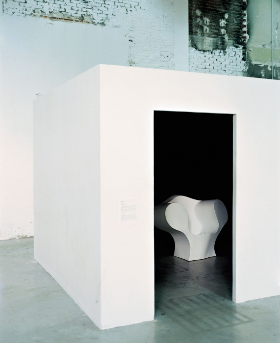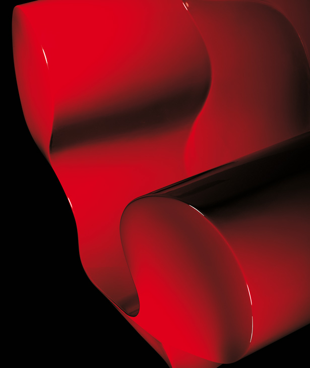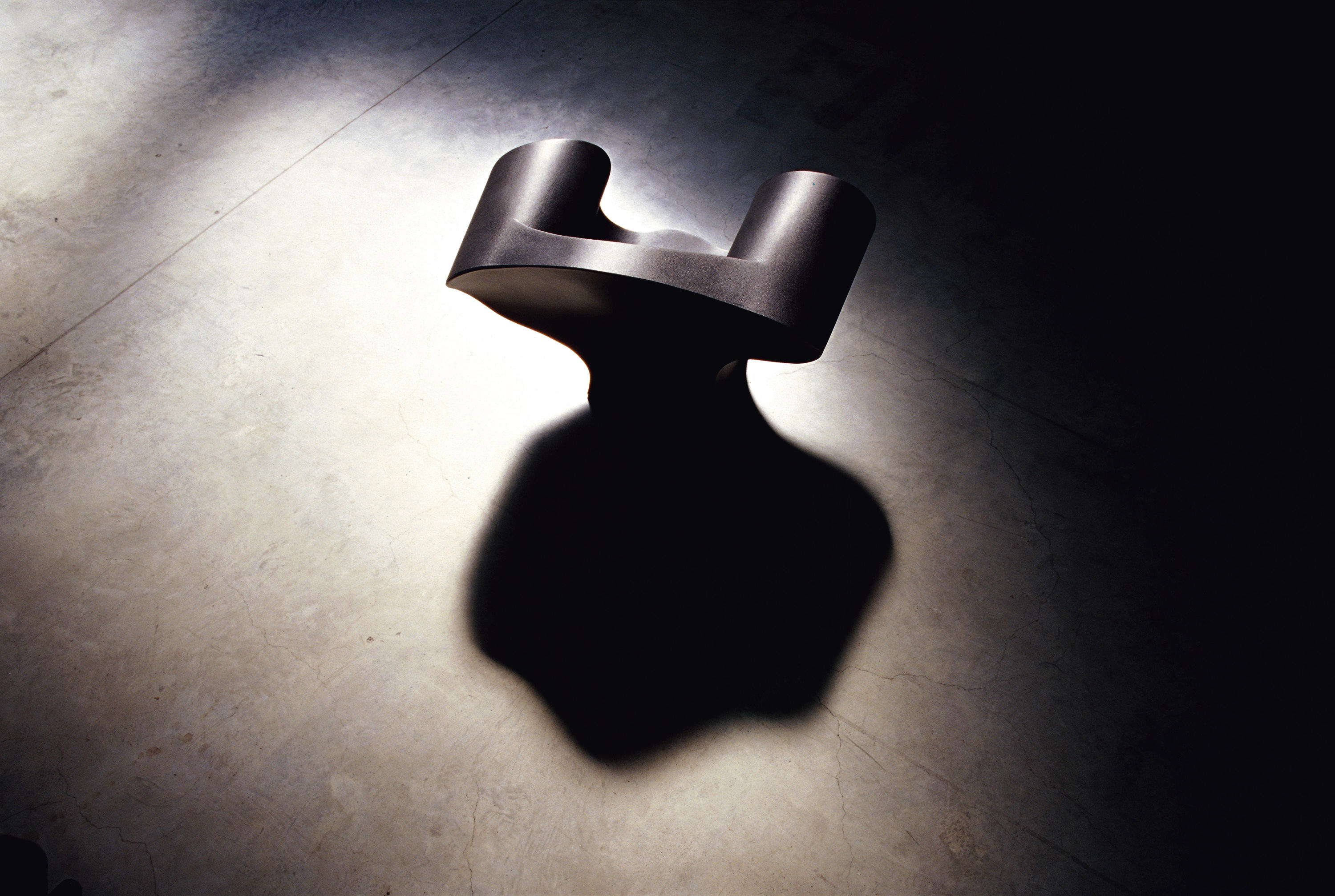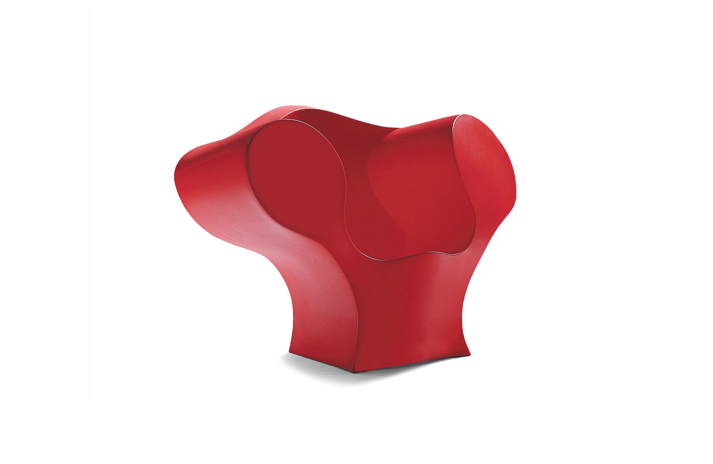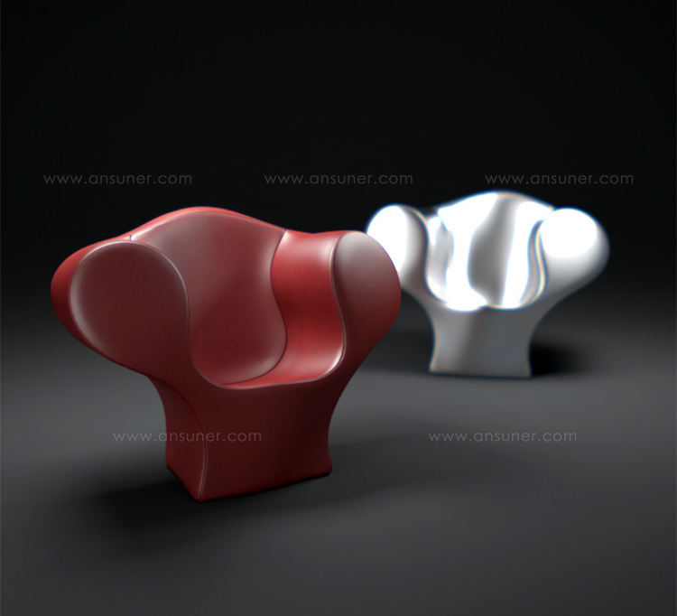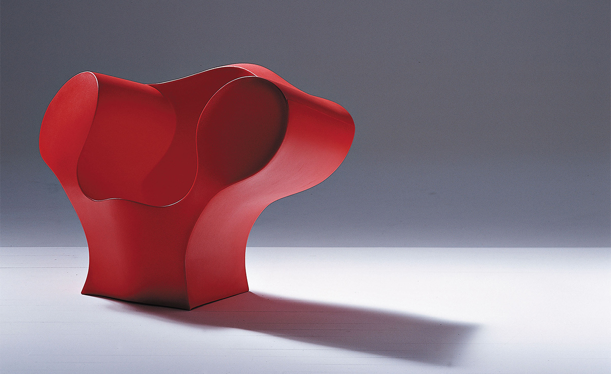 由Ron Arad在1988年设计的一个大的简单的钢椅,展示了一种简单的形式,可以在不影响设计原则的情况下,通过对材料和生产过程的重新解释而被翻译。从建设性的姿态获得的模型变成了工业生产;视觉的柔软和丰满的体积,舒适。更容易探索旋转模制和聚乙烯的使用;在冷泡中柔软的版本,用聚酯纤维包覆,触觉表面的转换;在元素的集合中,形态学和动态形式。