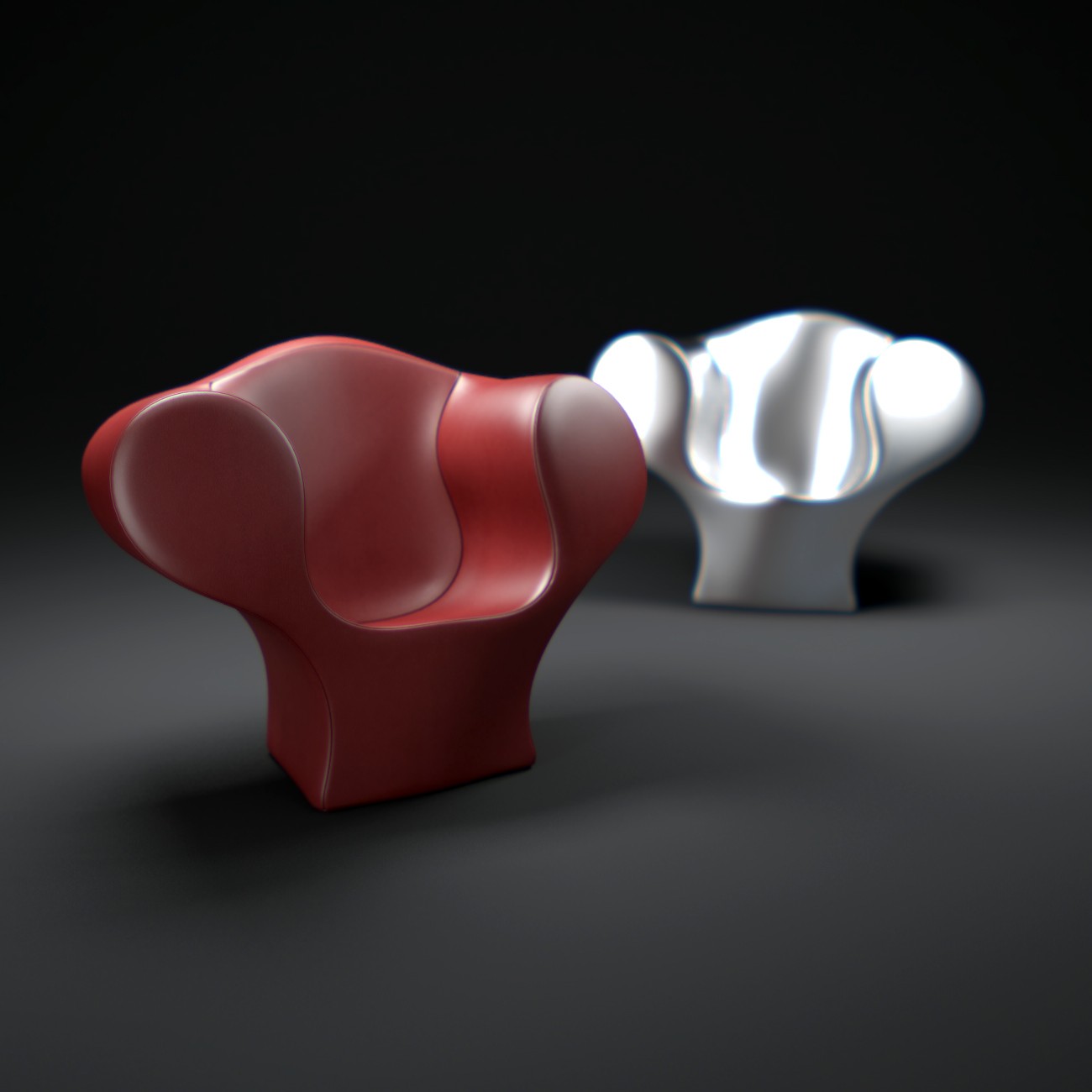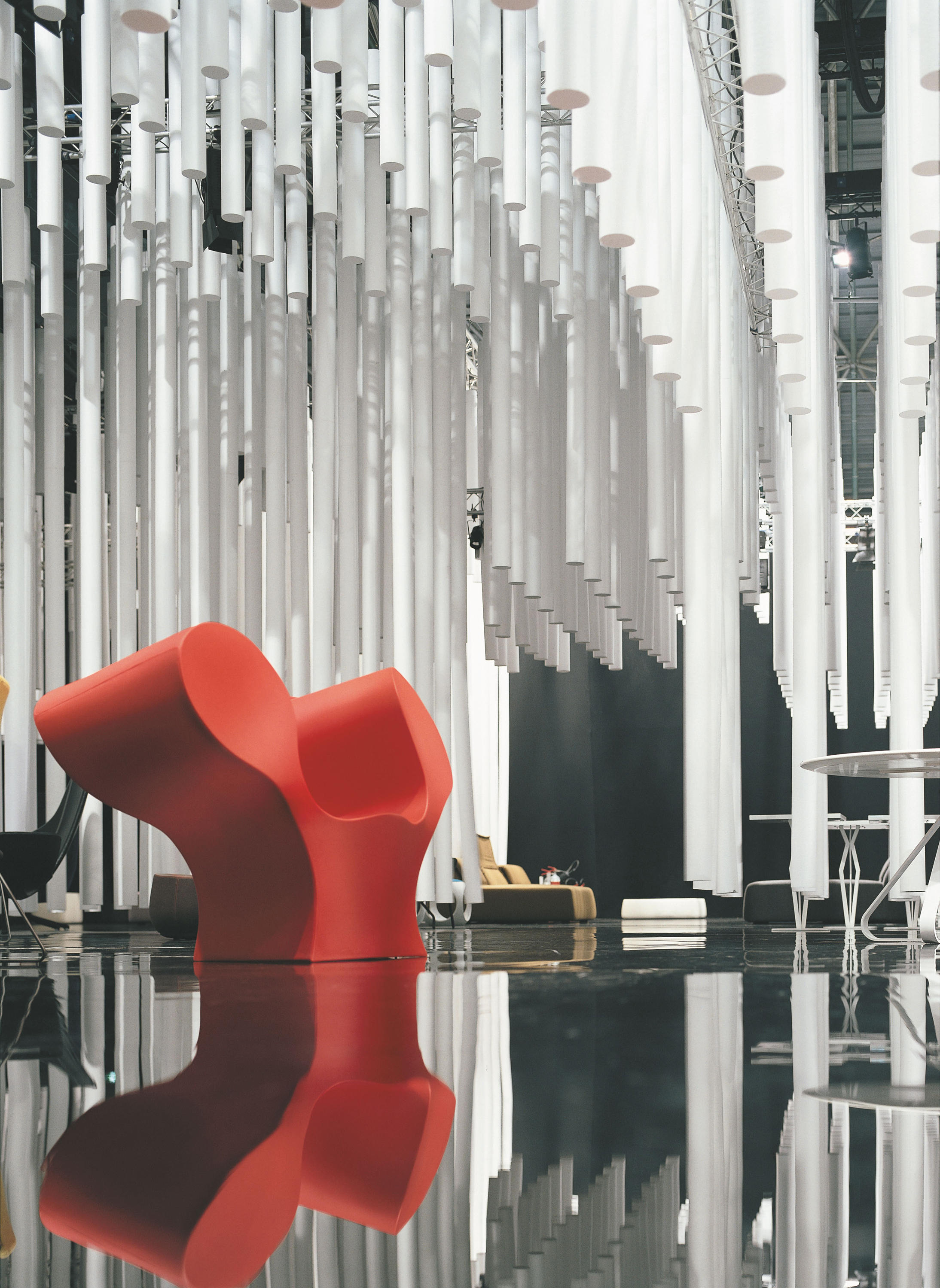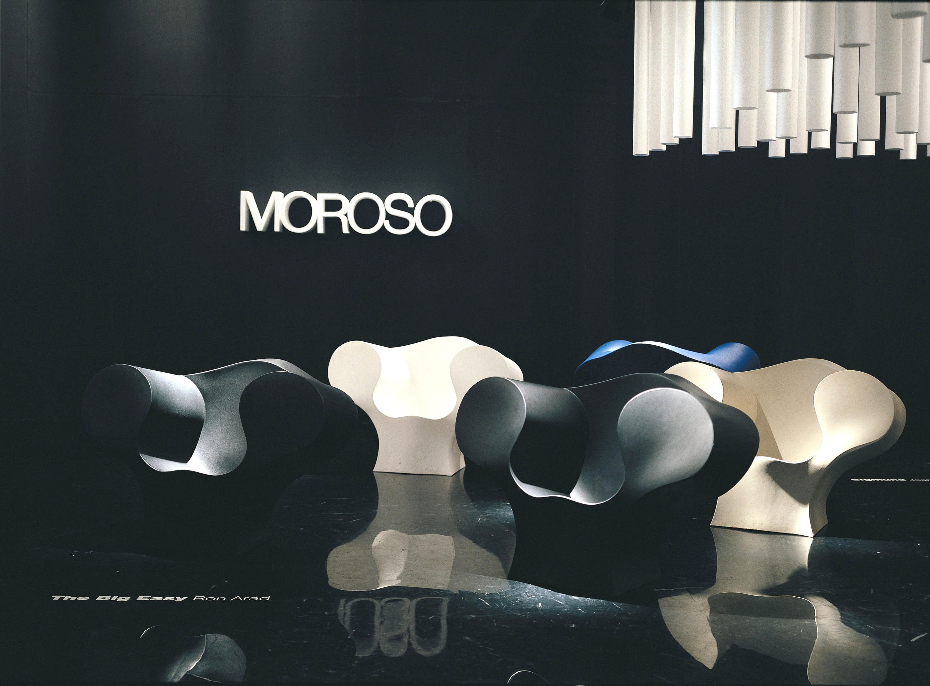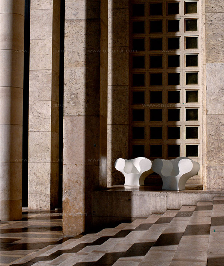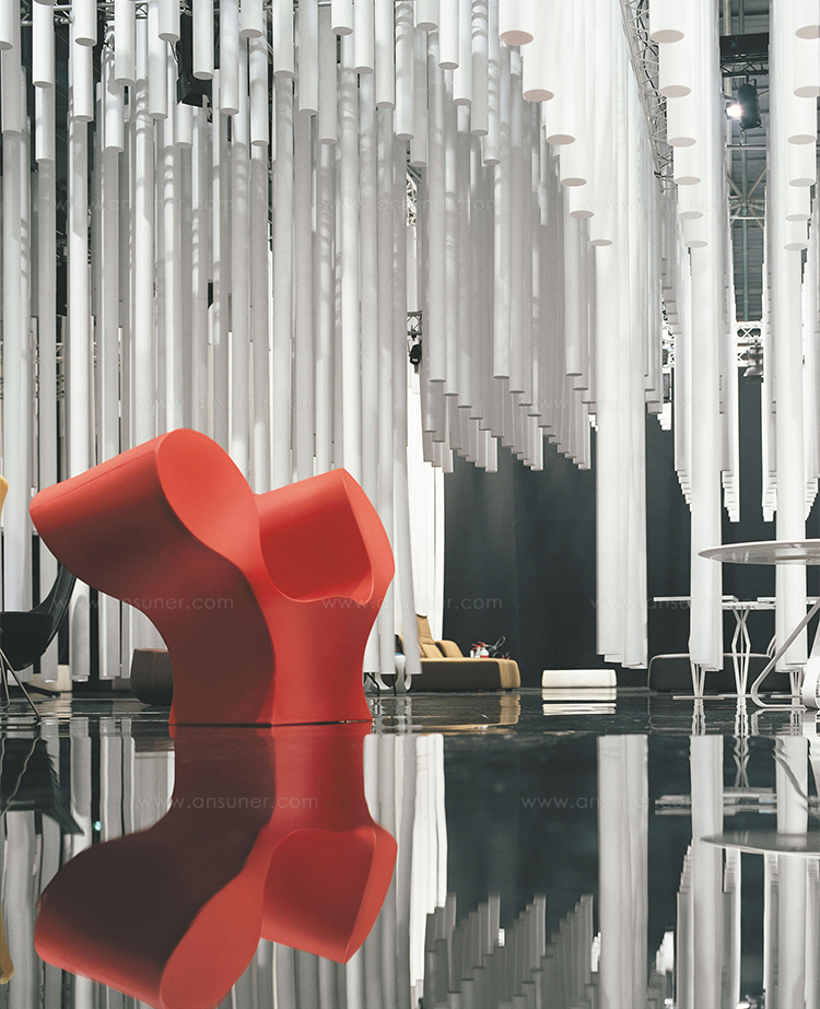 由Ron Arad在1988年设计的一个大的简单的钢椅,展示了一种简单的形式,可以在不影响设计原则的情况下,通过对材料和生产过程的重新解释而被翻译。从建设性的姿态获得的模型变成了工业生产;视觉的柔软和丰满的体积,舒适。更容易探索旋转模制和聚乙烯的使用;在冷泡中柔软的版本,用聚酯纤维包覆,触觉表面的转换;在元素的集合中,形态学和动态形式。