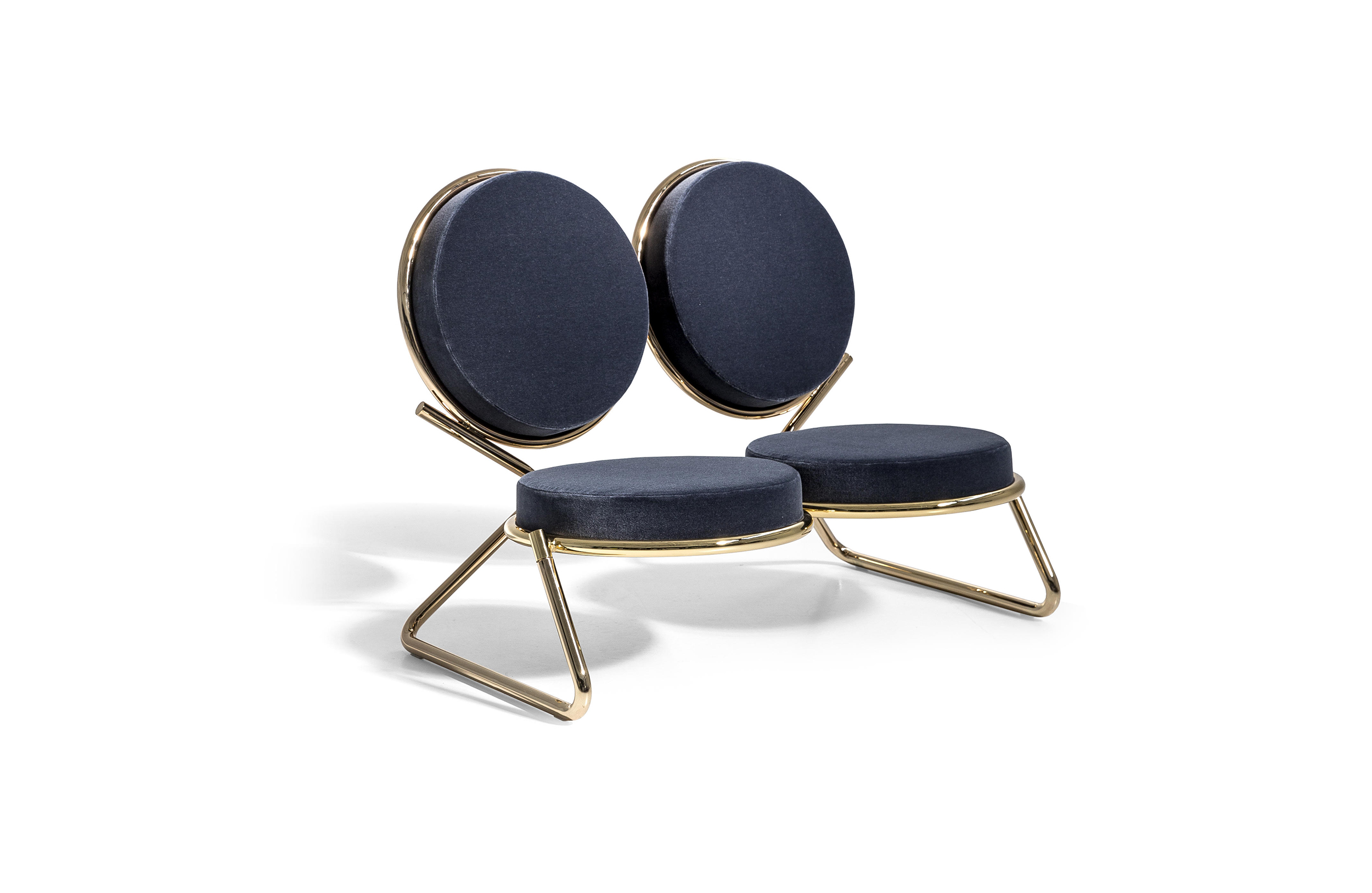 两个圆圈,两个基本模块接枝到本领域的结构几何结构中,去除了灵感,公开地传达了最大限度简化的趋势。这是高品质工业生产的前奏,这是一种优雅的经济,由镀铬钢框架提供的可能性表达,将设计结构设计成一个完整的座位家庭。这样,一把椅子和一把凳子就诞生了,没有扶手,加上一个小小的双座沙发,这是一种精致的正式进化,由良好的品味和阶级所决定。这是一种回归秩序,向一种同时奢华和合成的语言过渡。