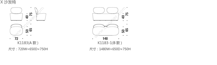 X 沙发椅 系列尺寸/示意图