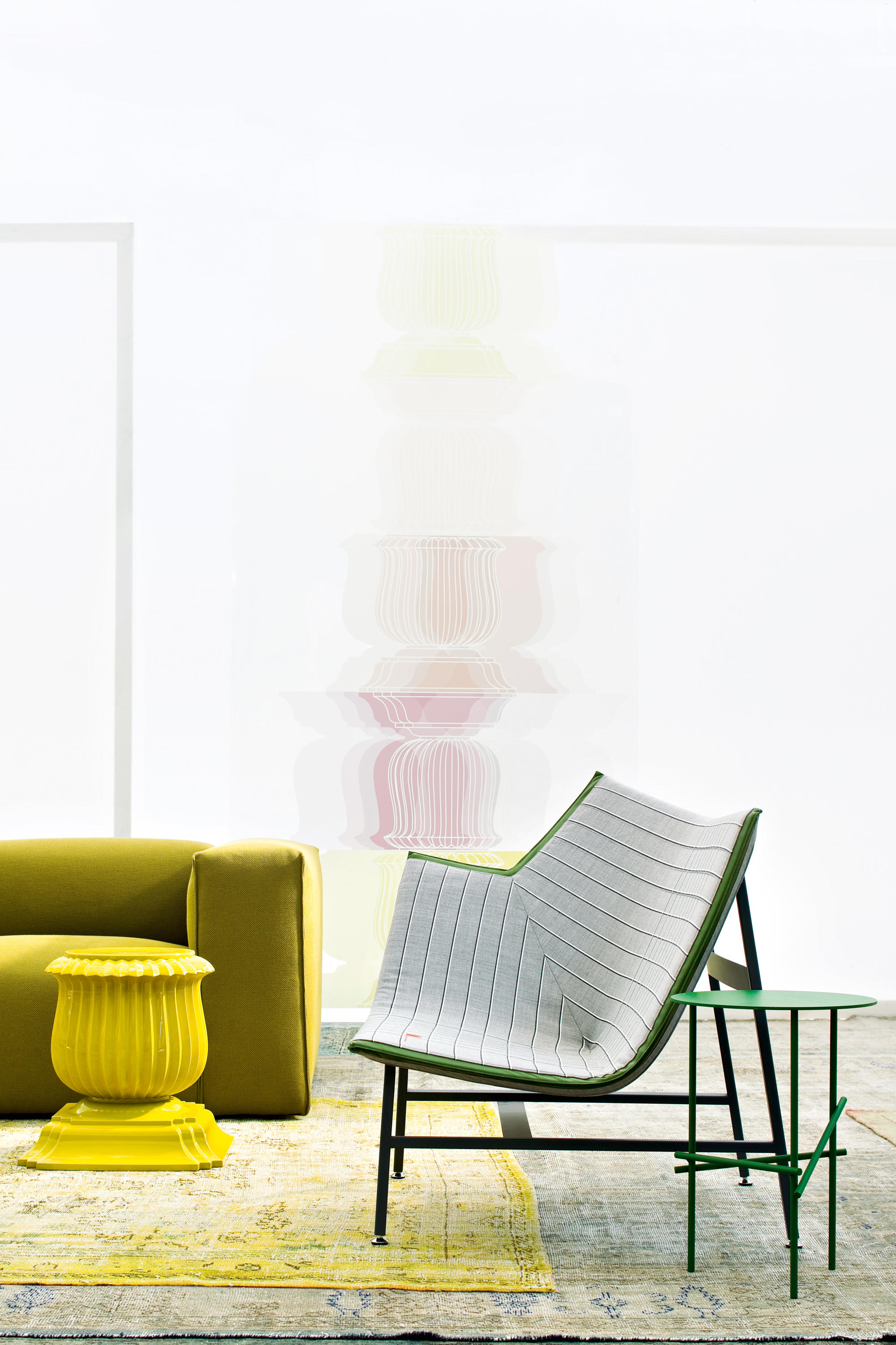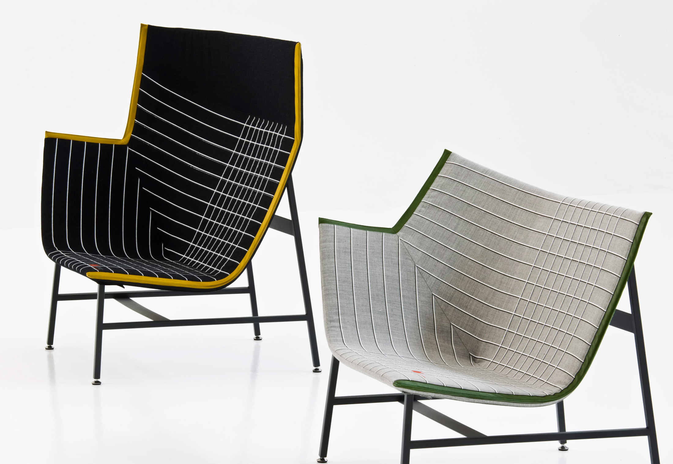 纸飞机起源于一种基于图形纸的织物设计:它的形状来自于纸张的折叠和造型,作为对形式和结构的探索,创造出角度、线条和多边形。它看似简单,却需要高超的裁剪技巧:面料的线条必须与椅子的几何结构完美结合,这意味着没有犯错的余地。