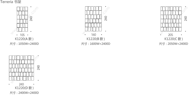 Terreria 书架 系列尺寸/示意图