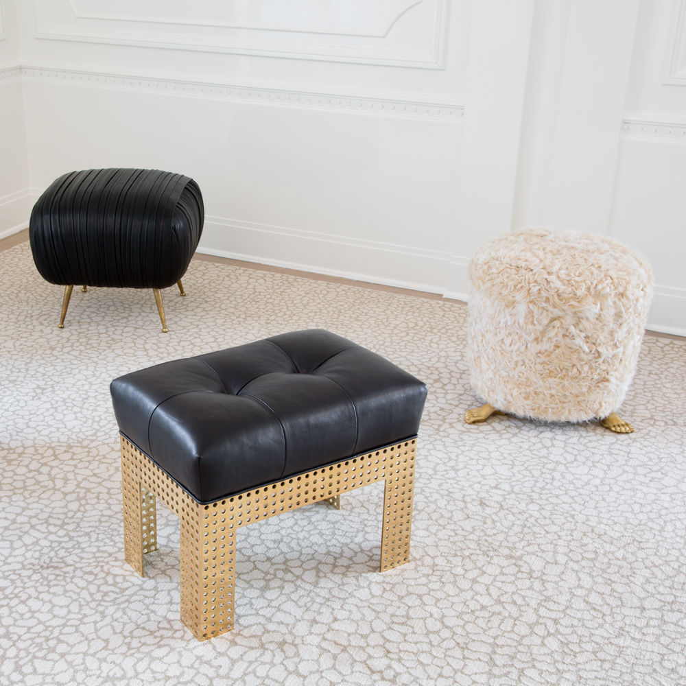 脚凳是由安装在实心黄铜铸脚上的豪华羊毛皮制成的。 意想不到的醒目,它是一个完美的奥斯曼或小巧的矮墩或妆凳。