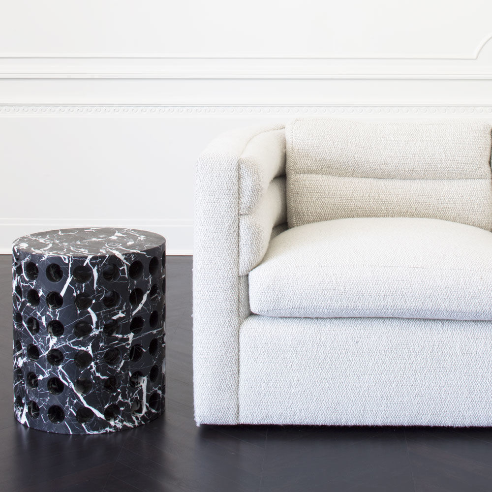 这款简约的多功能设计由一块坚固的黑色马奎那大理石手工雕刻而成,可用作座椅,凳子,底座或临时的桌子,非常适合淋浴或花园。 圆柱形是一种特殊的画布,突出了丰富的纹理,深沉的质感和大理石的光滑表面。