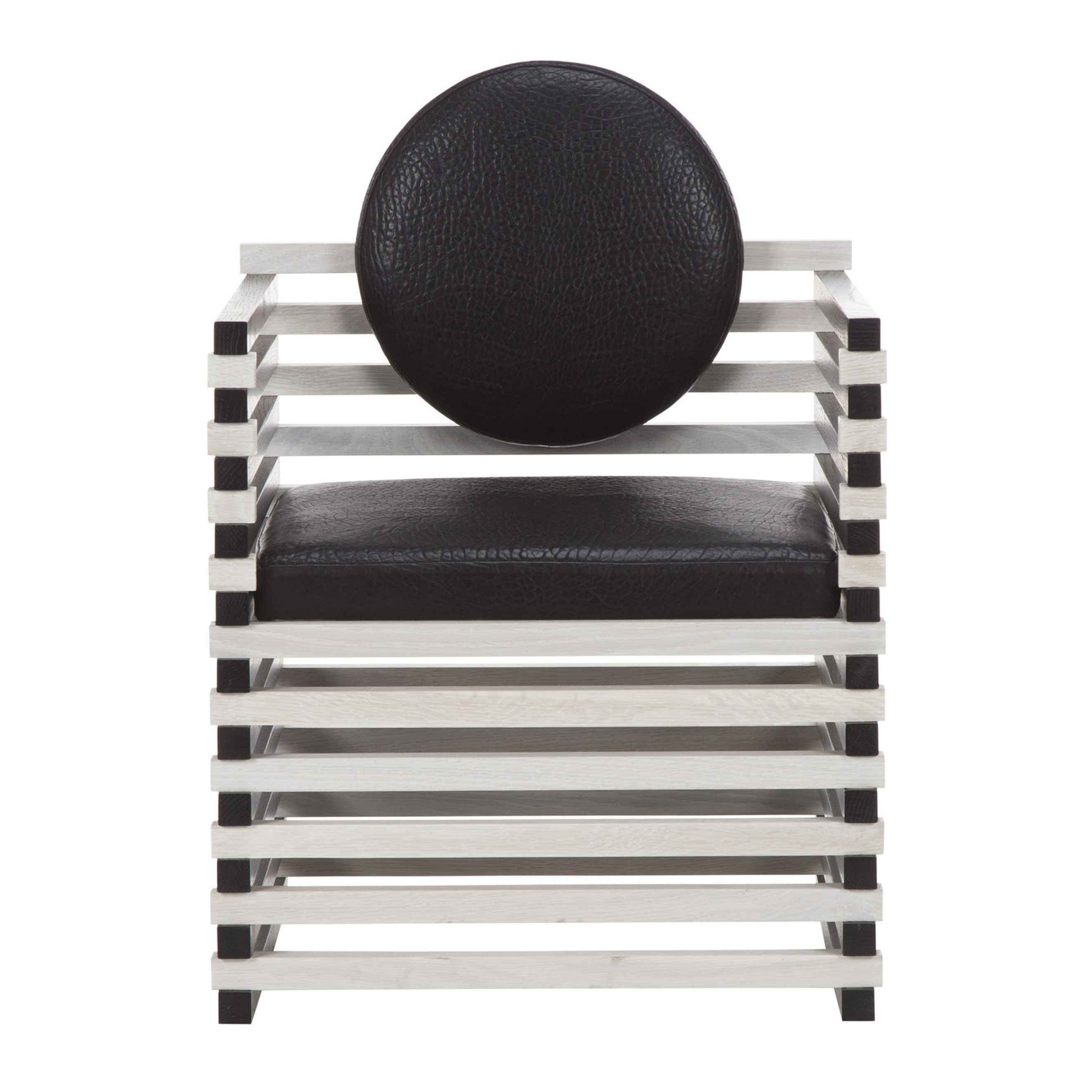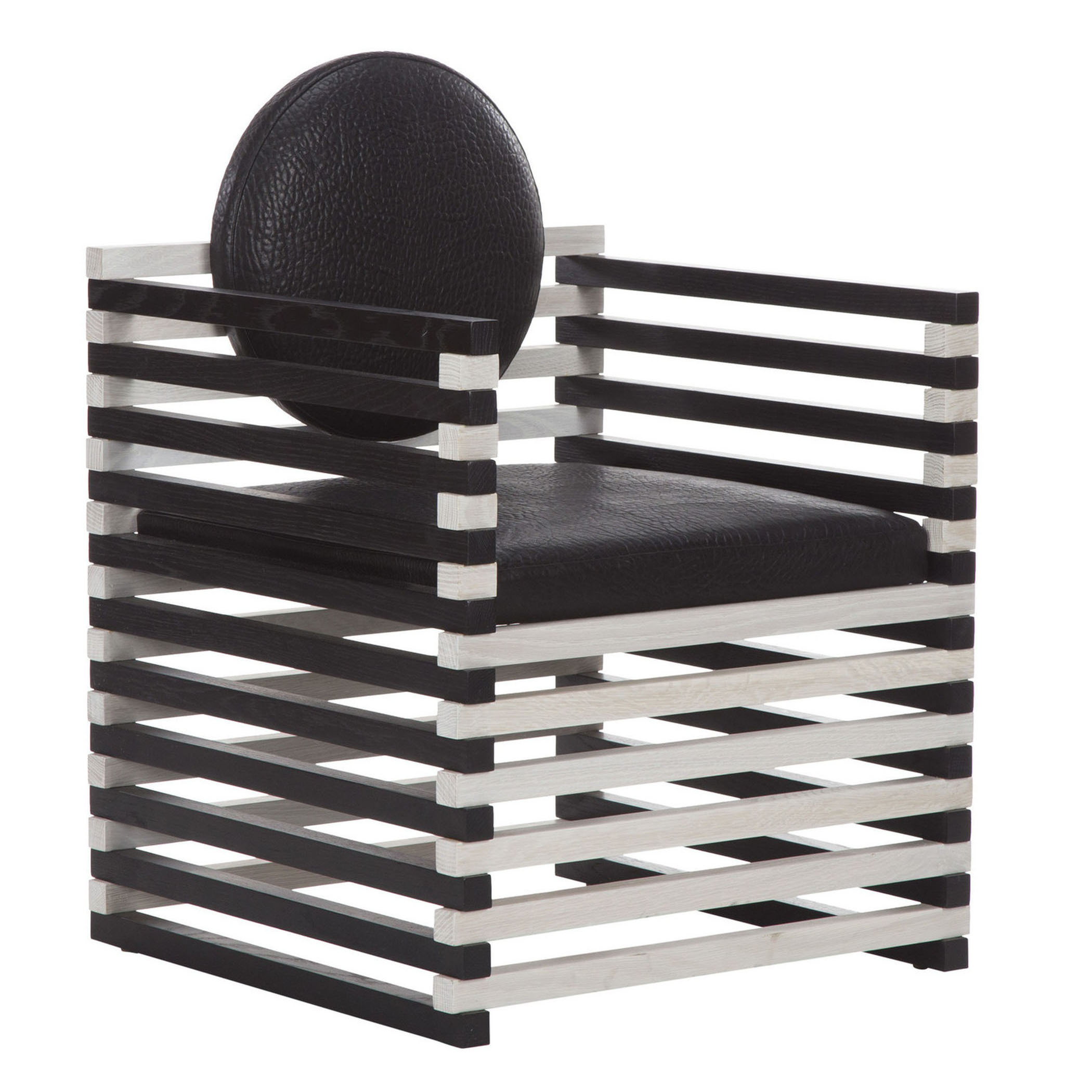 这款图案优雅的扶手椅采用实心橡木制成,采用交替的漂白Ebonzied饰面。 圆形靠垫增强了这种偶尔座位选择的雕塑魅力。 完美搭配入口通道或靠近控制台或书柜。