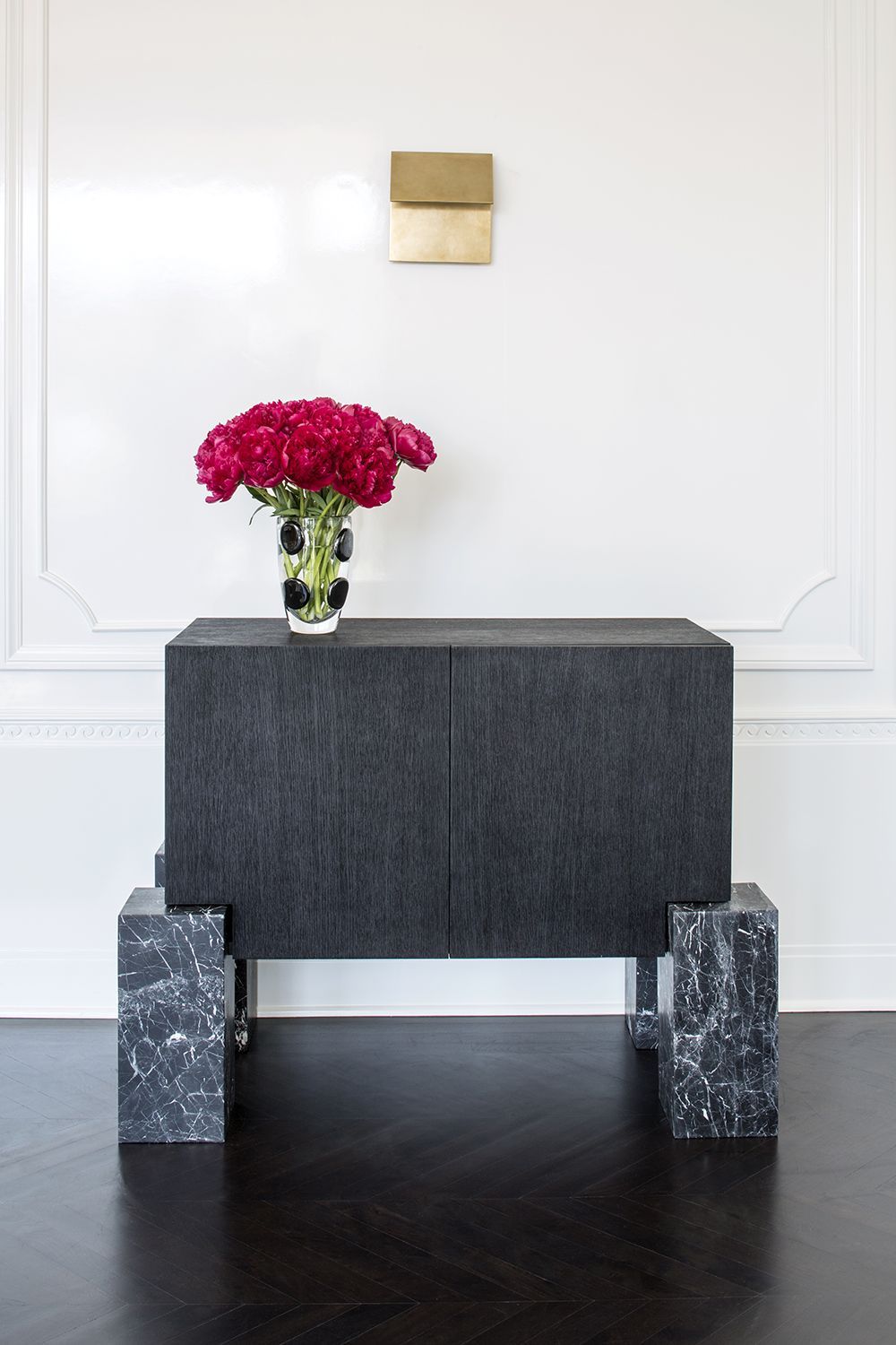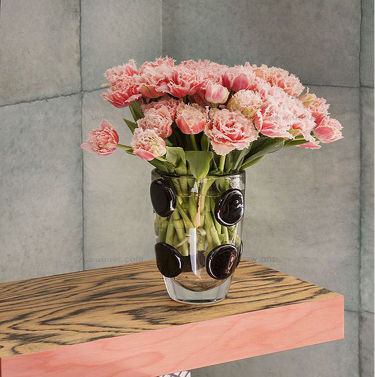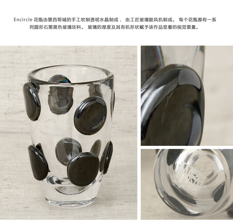 Encircle花瓶由墨西哥城的手工吹制透明水晶制成,由工匠玻璃鼓风机制成。 每个花瓶都有一系列圆形石墨黑色玻璃坯料。 玻璃的厚度及其有机形状赋予该作品显着的视觉重量。 Encircle花瓶非常适合插花或作为独立装饰。