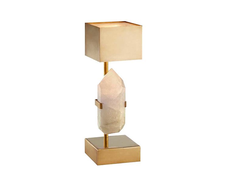 这款台灯由手工精选的坚固天然石英石和雕塑黄铜底座组成,融合了Kelly对巧妙调制和天然材料的商标亲和力。 优雅而前卫,其微妙的精致和深沉的酷感为任何空间增添了精神和维度。