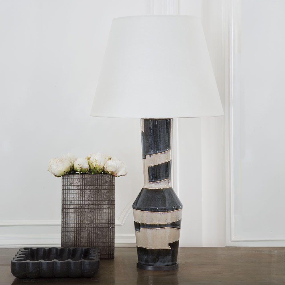 Alta系列由雕塑作品组成,是优雅和纯净的任何内饰。 在雕刻的天然材料中重新构想的几何轮廓变得优雅的雕像般。 有沙色和黑色条纹可供选择,多孔白色和象牙色有亚麻灯罩。