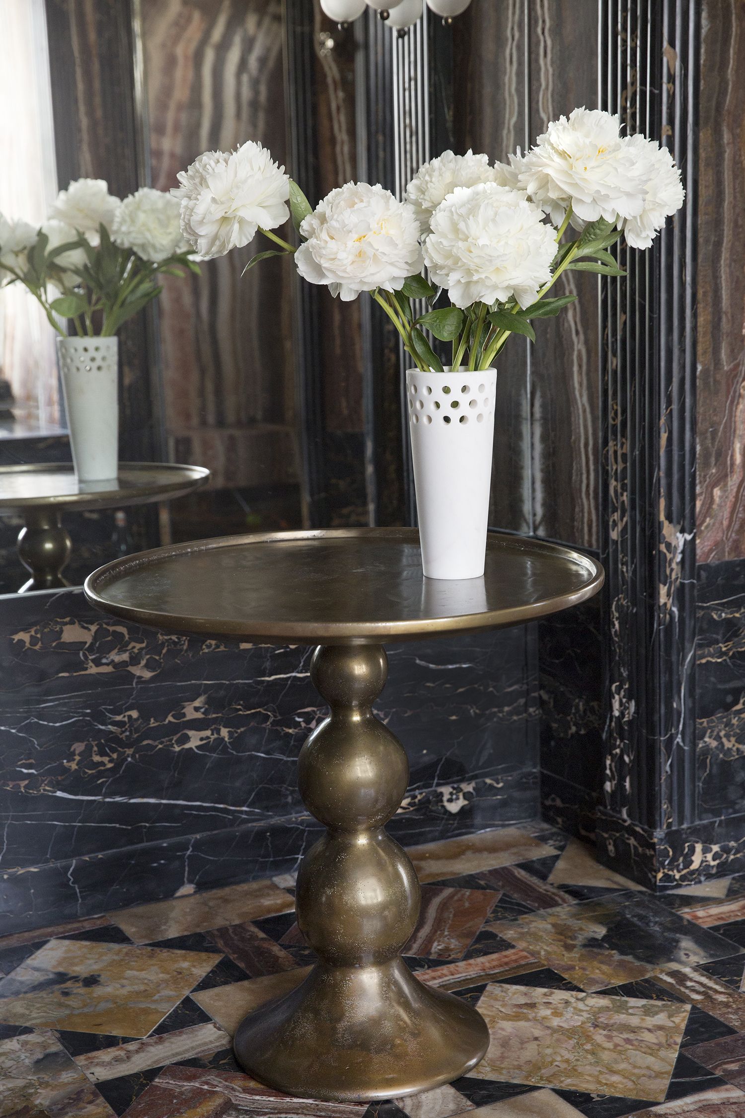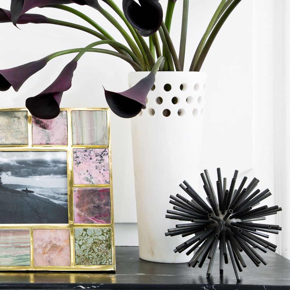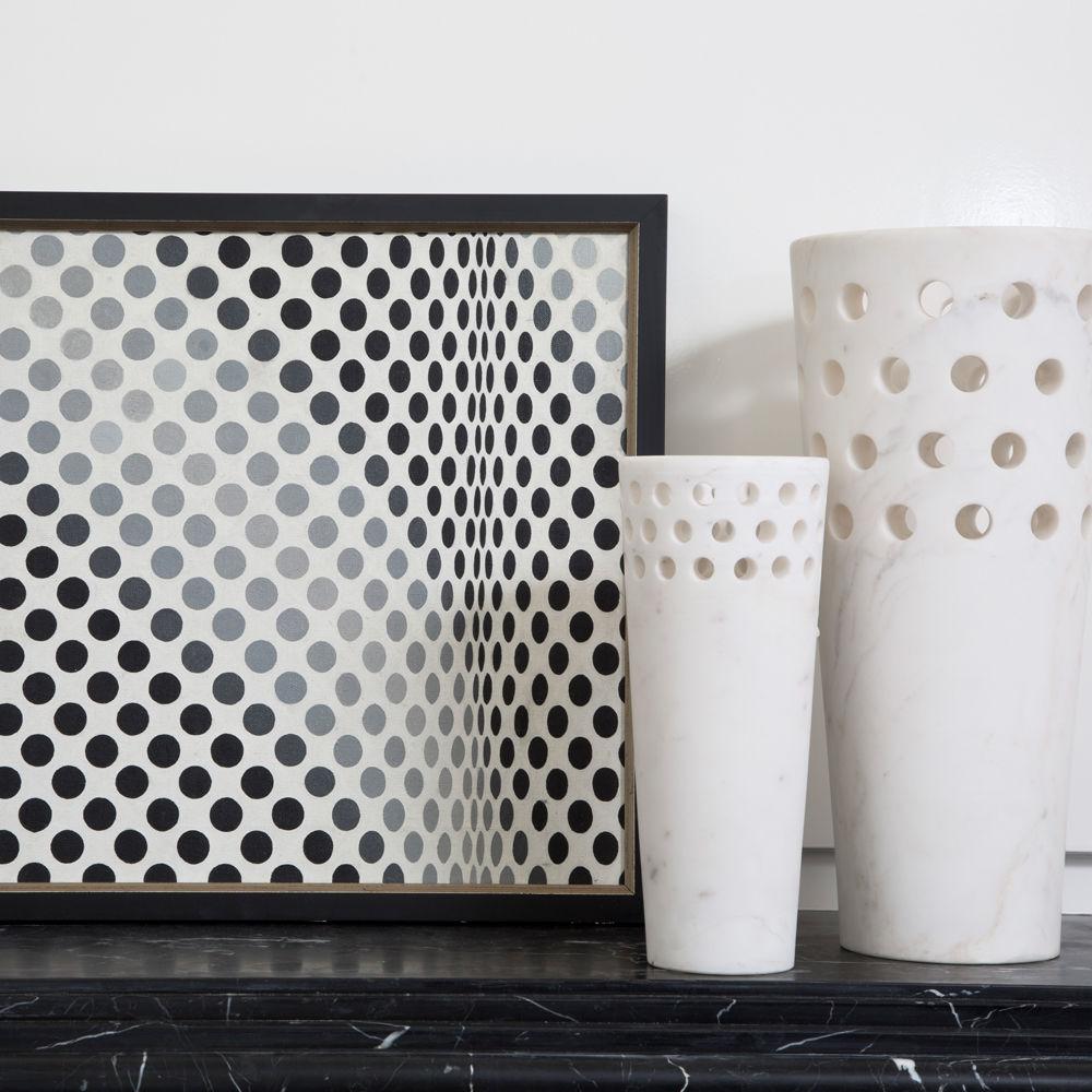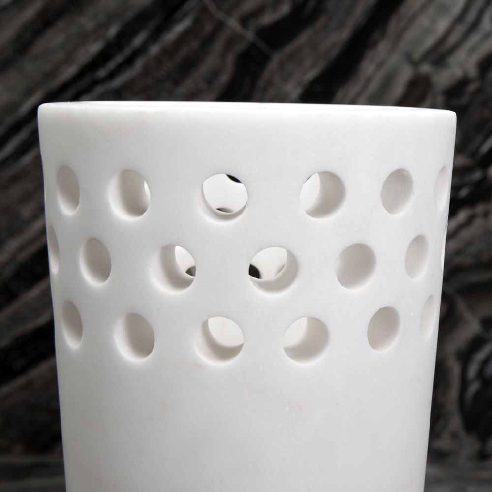 这款优雅且装饰精美的单品采用Kelly标志性穿孔细节设计,重新打造奢华的白色卡拉卡塔大理石,大胆装饰花卉布置或独立时尚。