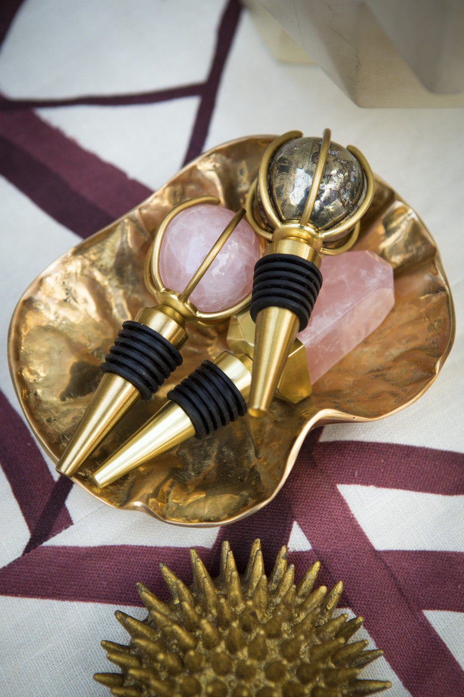 这款实心黄铜葡萄酒塞在洛杉矶手工雕刻,与Kelly's Acolyte系列酒吧和娱乐用品相得益彰。