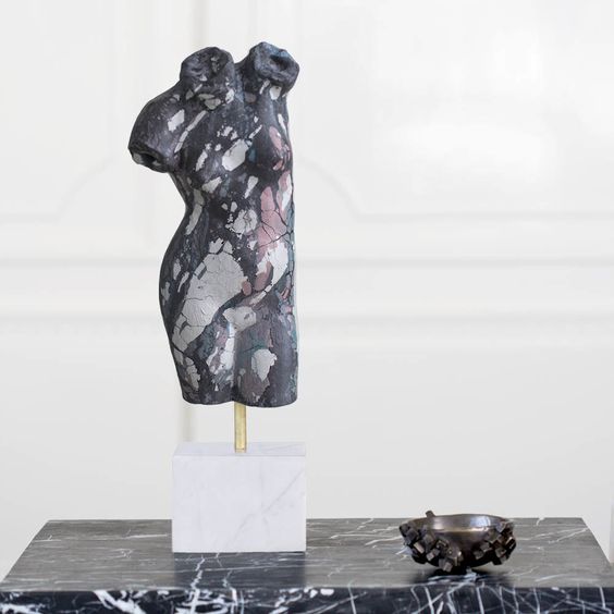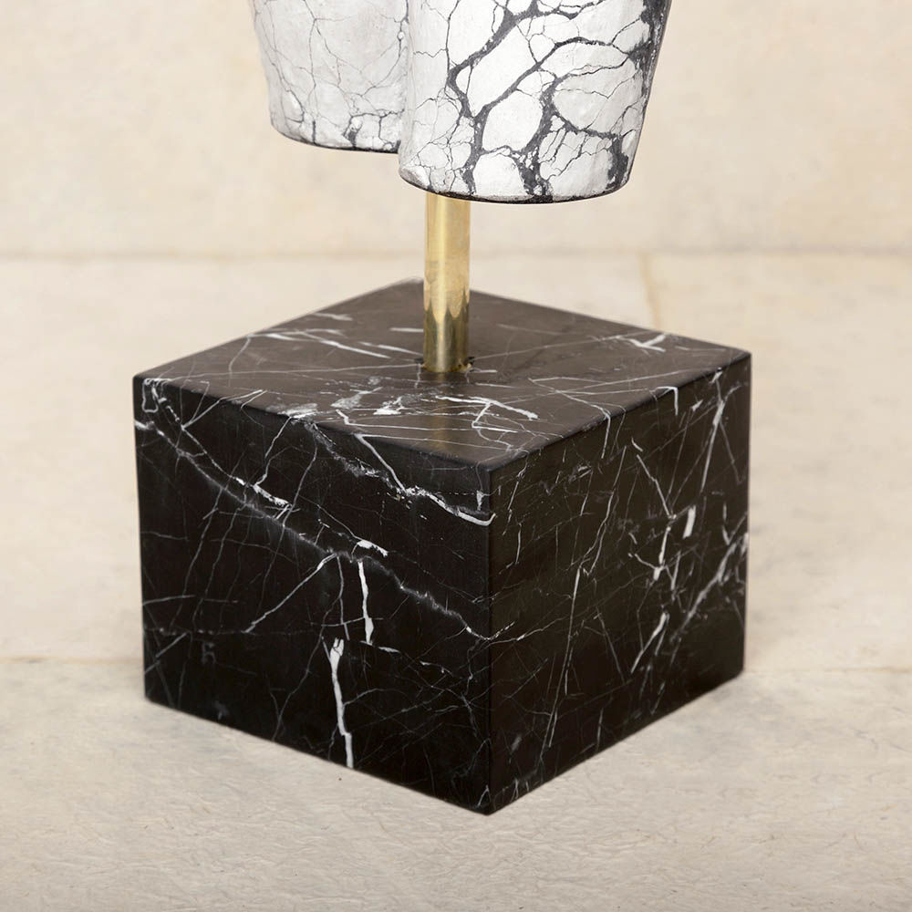 这款桌面雕塑描绘了一款经典的女性躯干,采用手工浇筑的混凝土。 混凝土中充满了颜料,使每种形状都具有完全独特的色偏。 每个雕塑都坐落在坚固的黑色Marquina大理石底座上,并与坚固的抛光青铜杆相连。