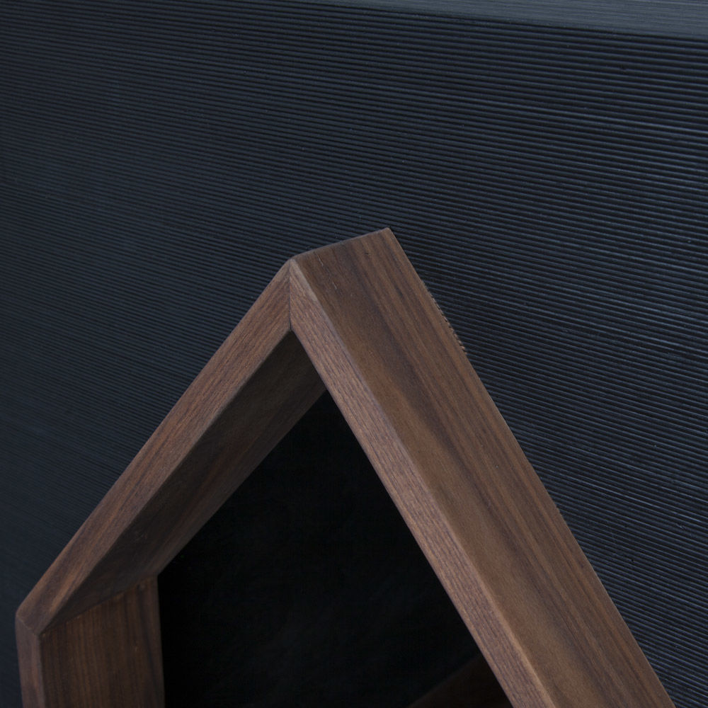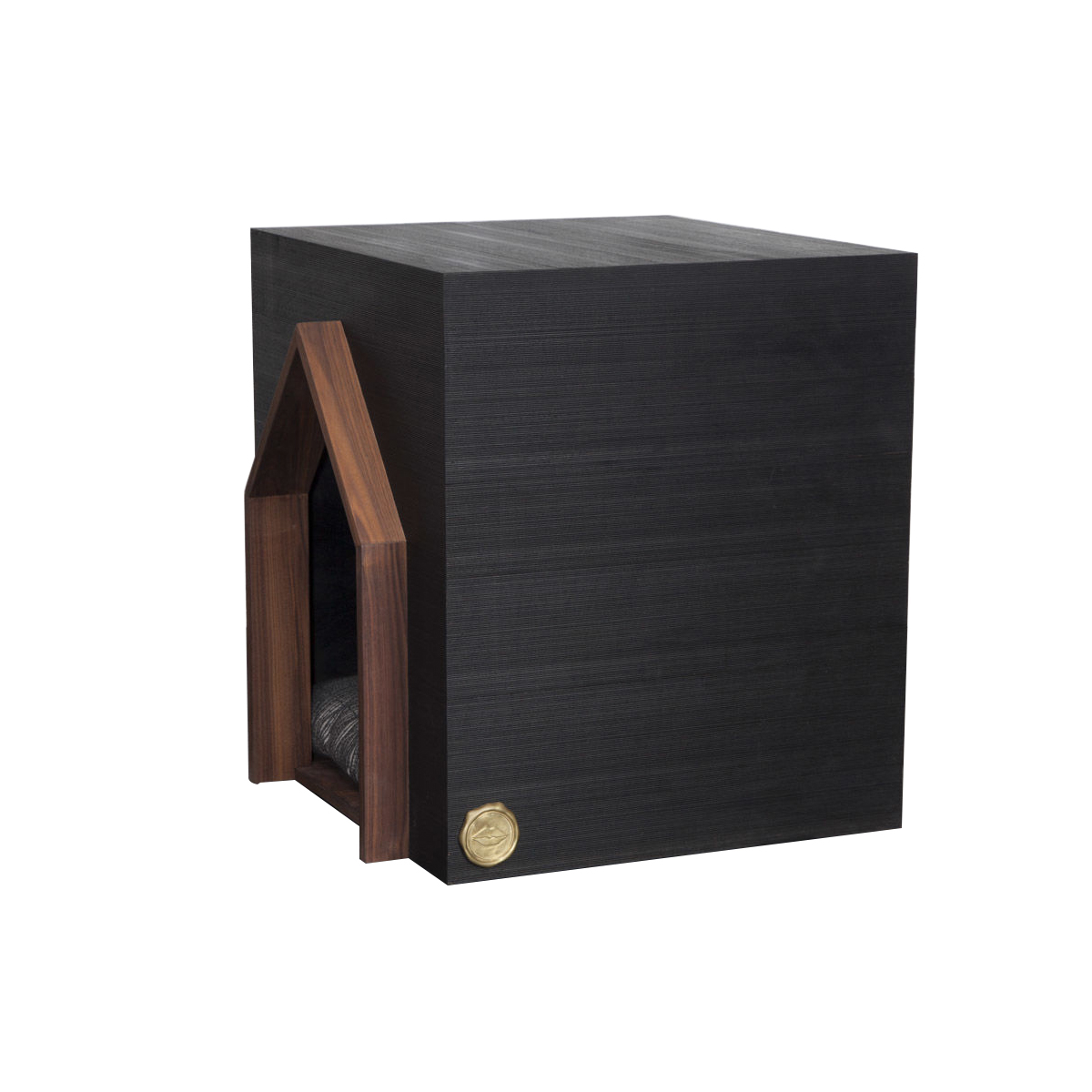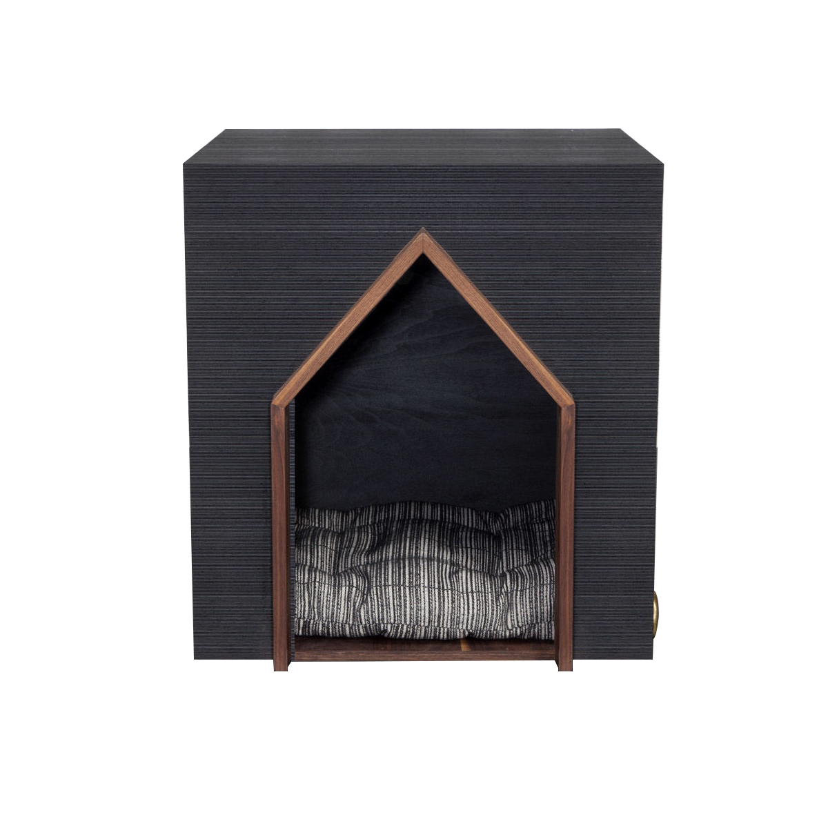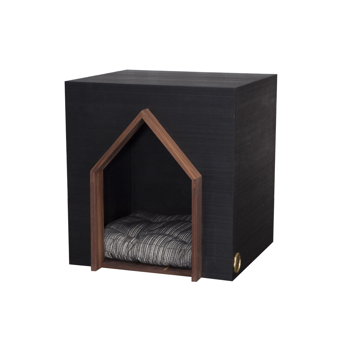 人类最好的朋友应该有一个时髦的住所。由黑色罗纹胡桃木组成,饰有抛光青铜徽章和凯利标志性的亲吻图案细节。