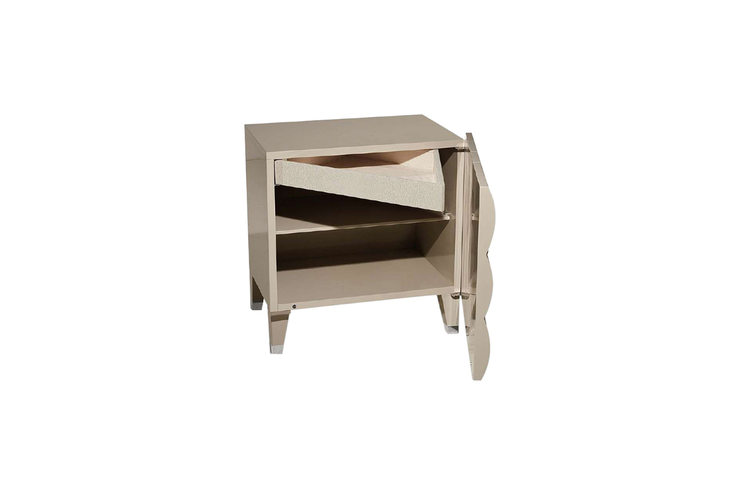 SHUTTER / DRAWER Wood with wavy effect three-dimensional pattern, covered in leather or with glossy lacquered finishing