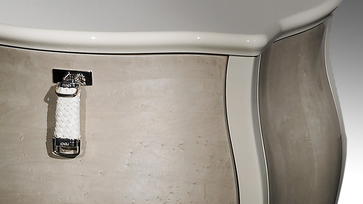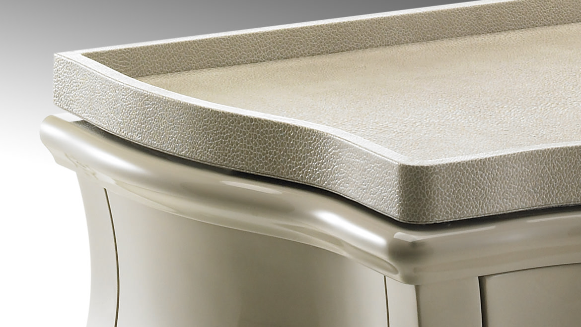 finishing or with special "stretch" velvet. Version with drawers and lateral sides covered in leather or veneered Erable polished with transparent glossy finishing