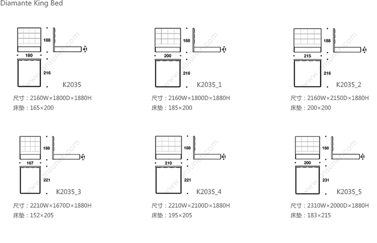 Diamante King Bed 系列尺寸/示意图