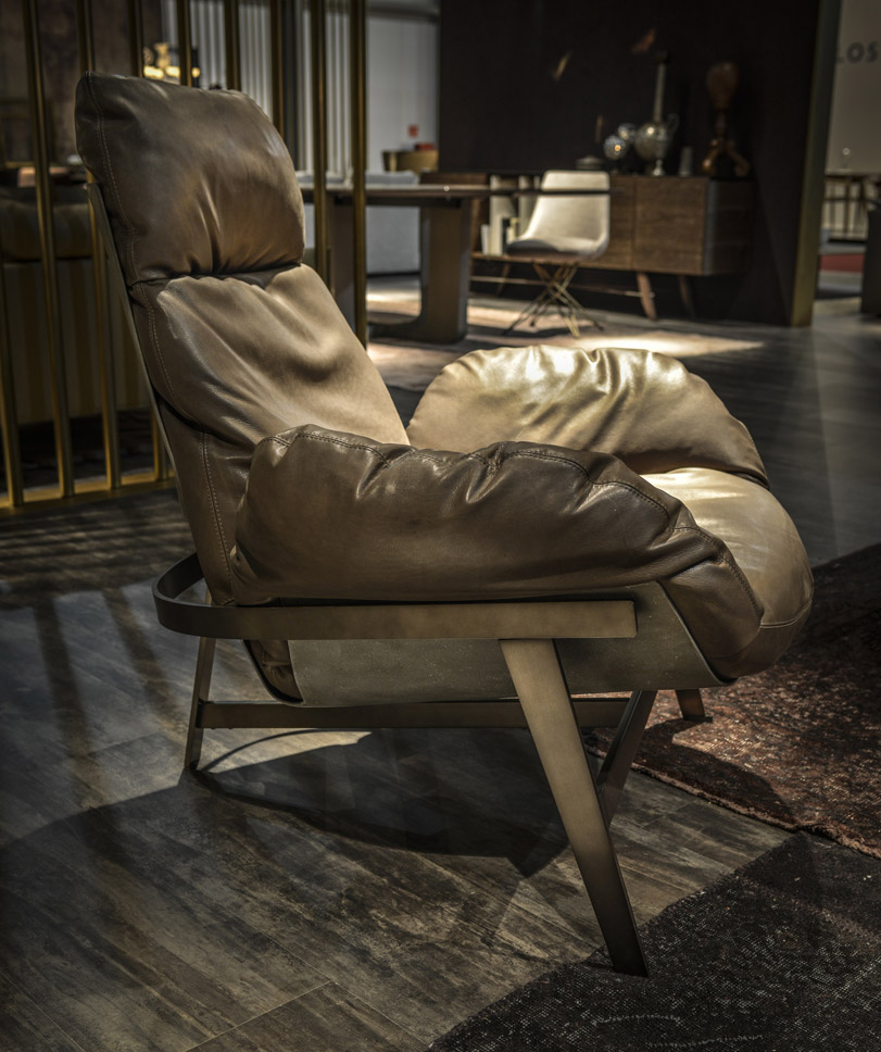 优雅而符合人体工程学的平衡。 动态稳定的温和。建筑配置突出了永恒的外观,并强调了个人使用材料的重要性。木星扶手椅有一个折叠的金属拱结构,由玻璃纤维外壳支撑着,填充的羽毛保证了高水平的舒适感。