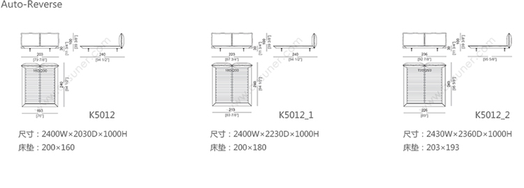 Auto-Reverse bed 系列尺寸/示意图