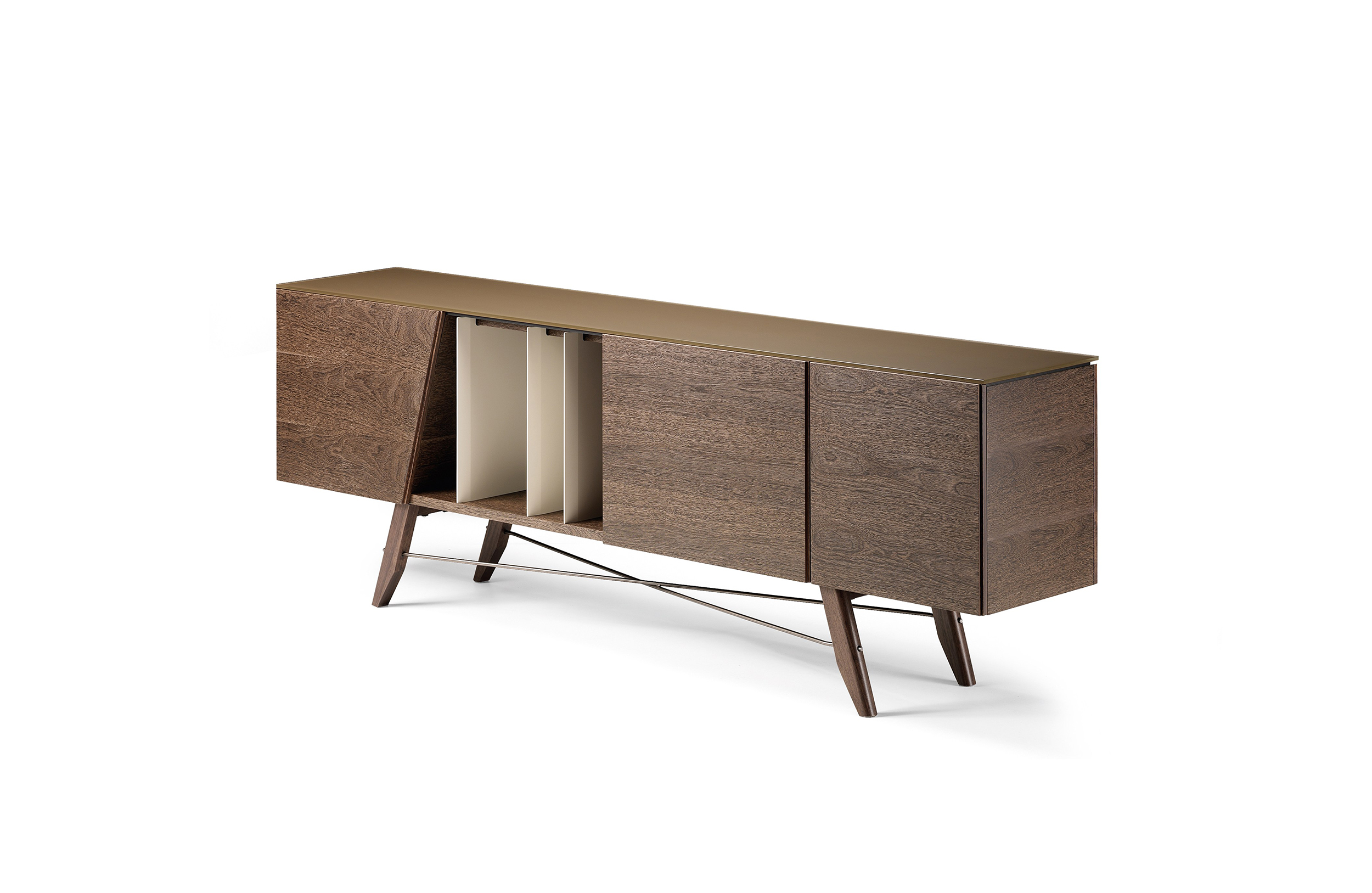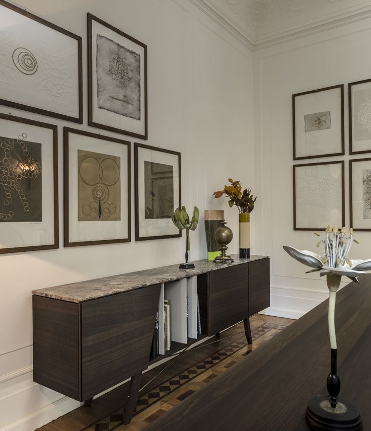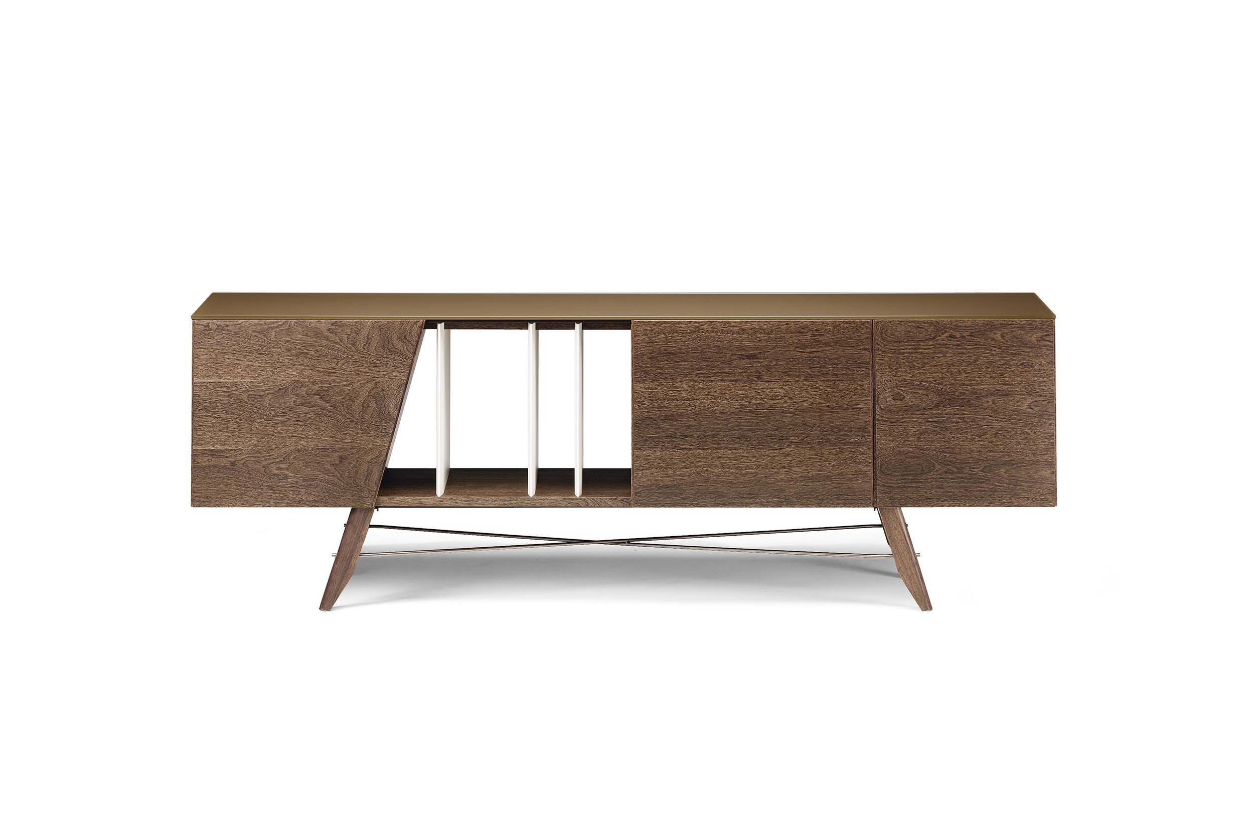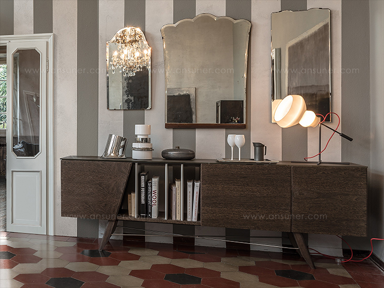 受到1950年代清醒的启发,Longplay餐具柜是多功能的,适用于任何环境。柜身的开放位置可以用来储存书籍和物品,也可以作为分割线将开放区域的客厅和餐厅完美的隔断。柜门的独特几何形状设计和柜门反弹器结合了现代魅力。顶部可以用酸蚀刻的玻璃或大理石以及建筑的热木材,在材料和颜色之间形成一种令人愉快的对比。