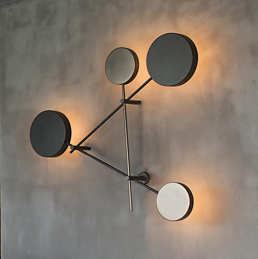 Iride是一个线条和圆圈的雕塑,几何形状的强烈的装饰效果,让你想起了康定斯基年代作品。圆盘形成了一个类似于日食的发光的光环。交错的结构是由三个圆盘和三个云母棕色金属棒和一个钛金属圆盘和棒制成。