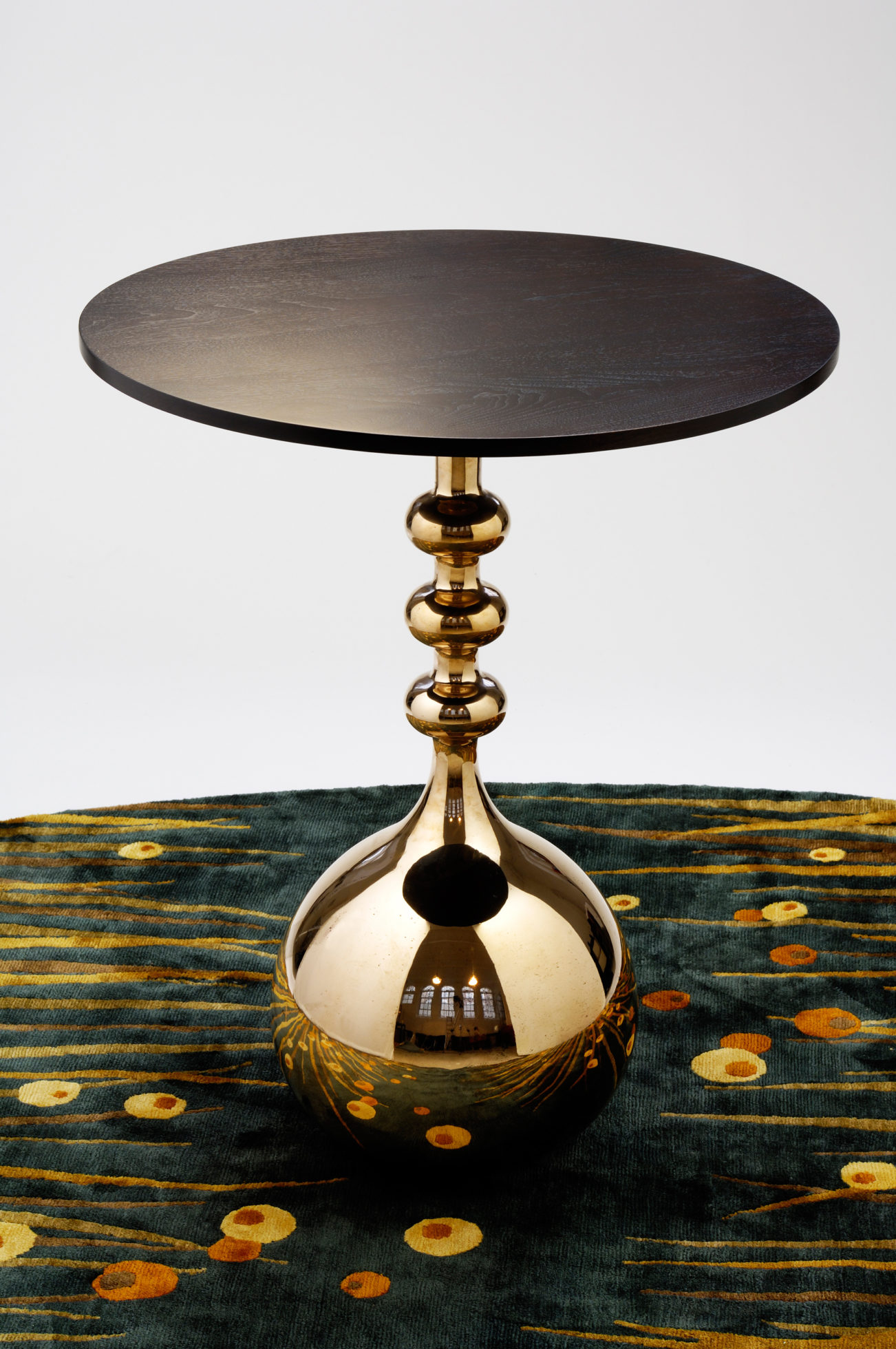 摆设的桌子上有抛光的青铜底座和美国黑胡桃天然涂油的深色上衣。