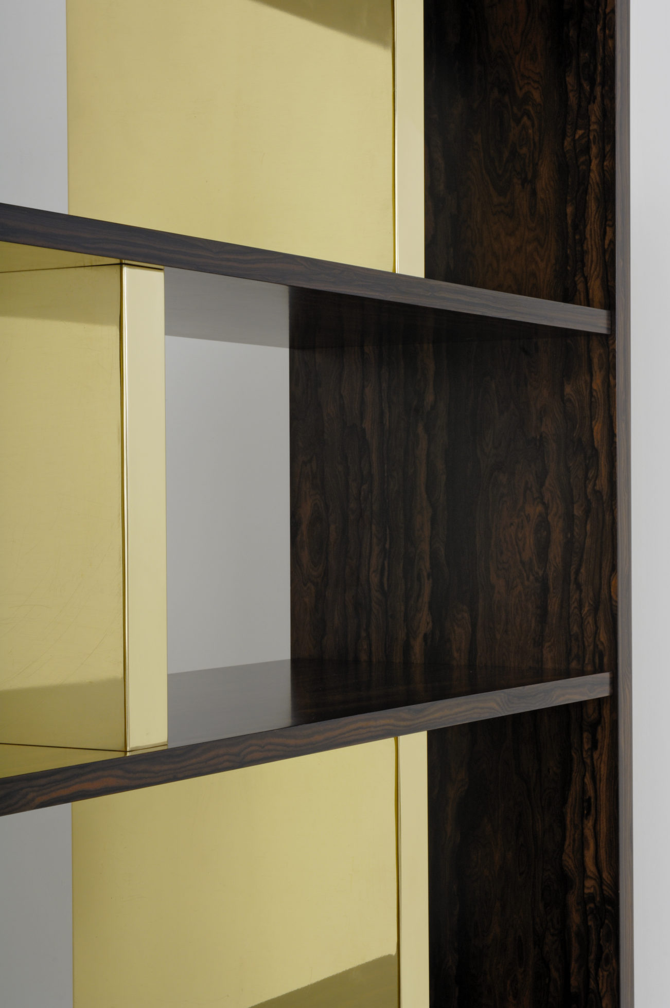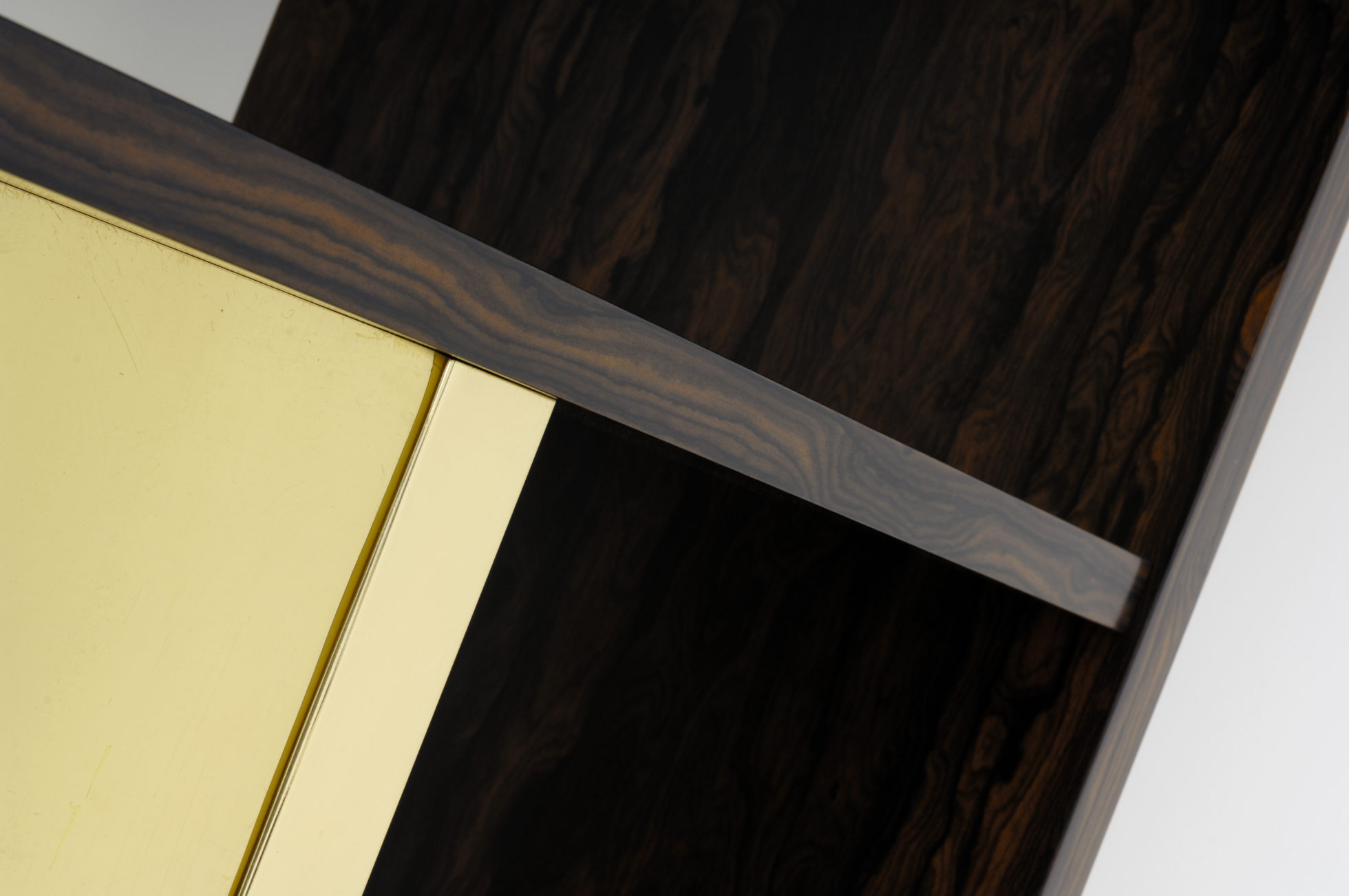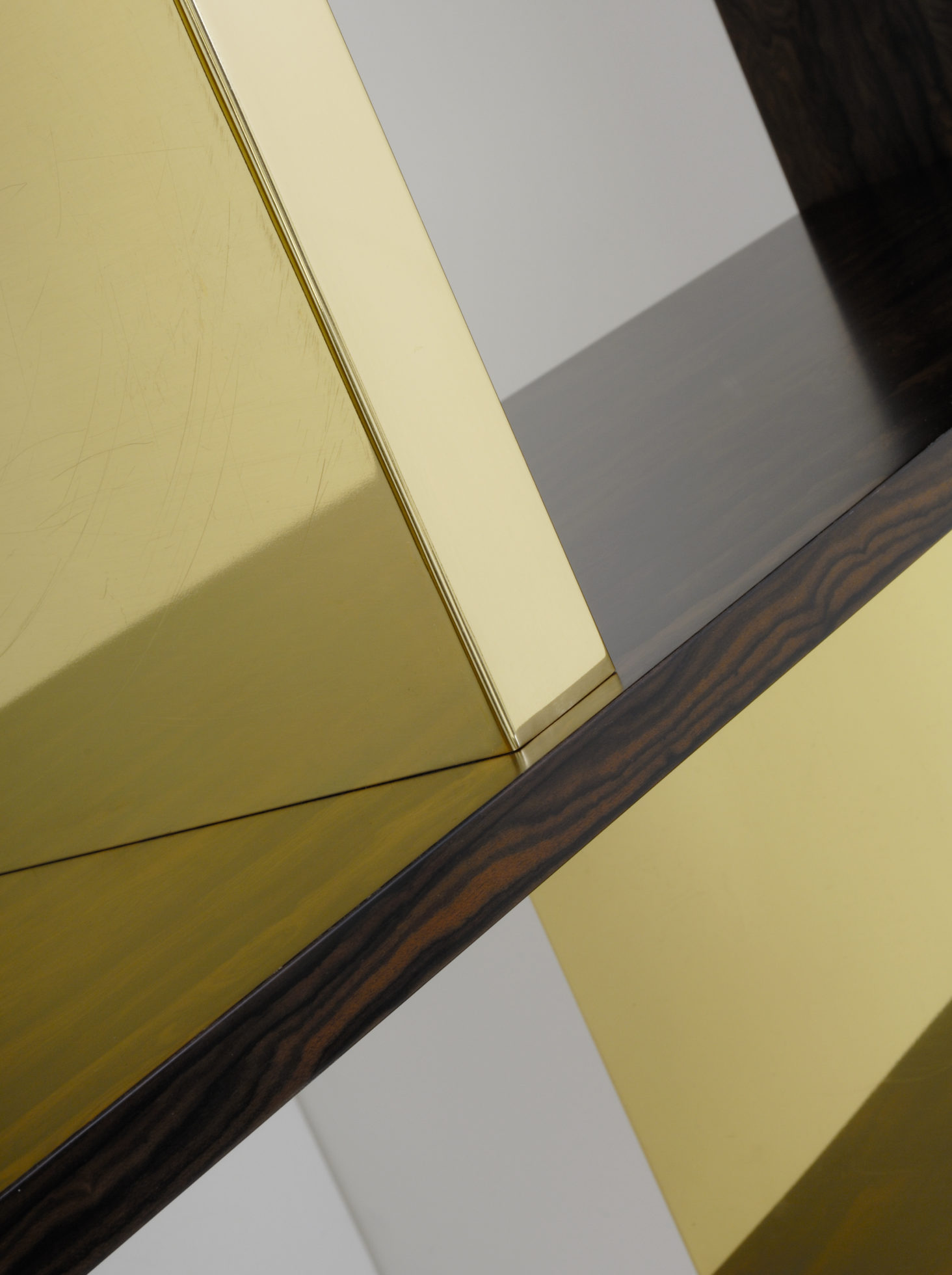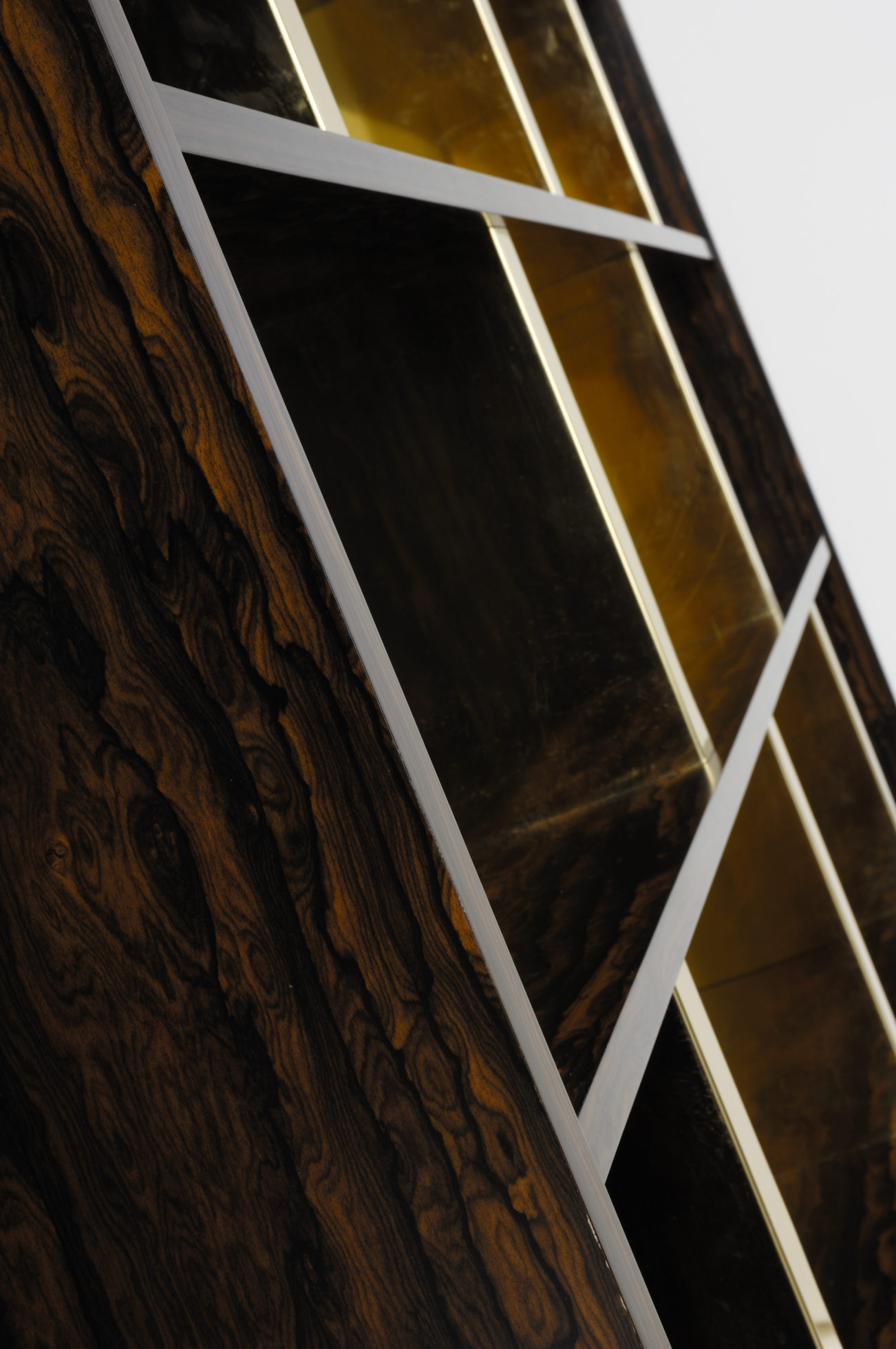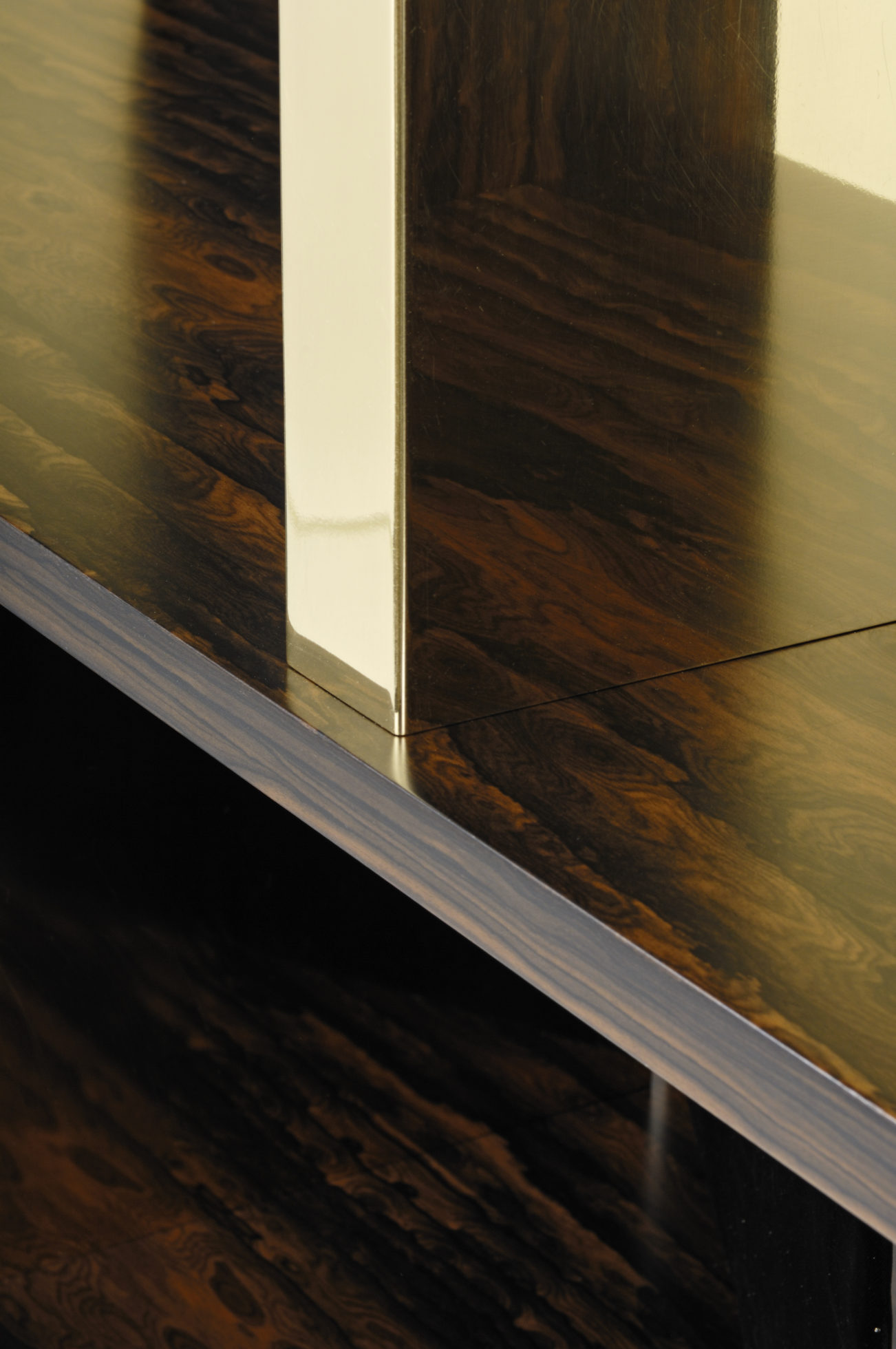 这里展示了戏剧性的Zirocote单板,抛光黄铜立柱和底座。 海伦小姐可以选择金属饰面,贴面,油漆颜色和各种尺寸。